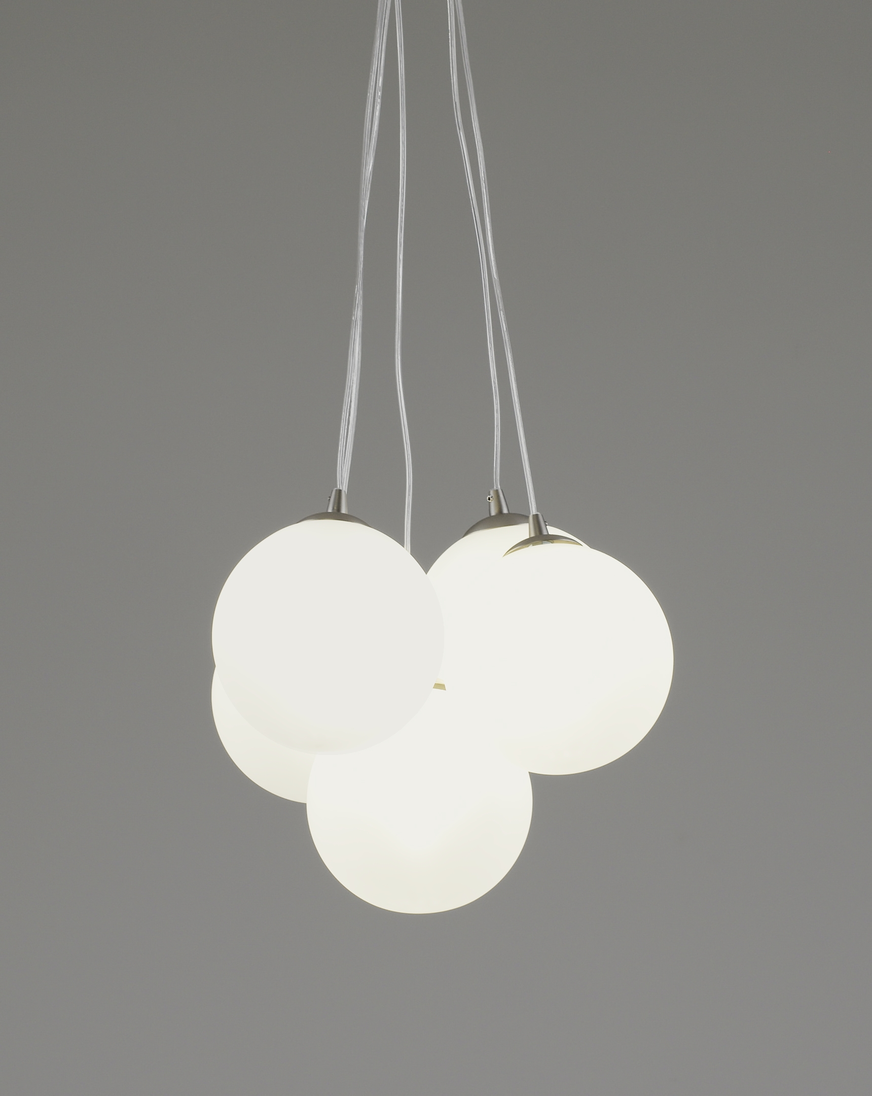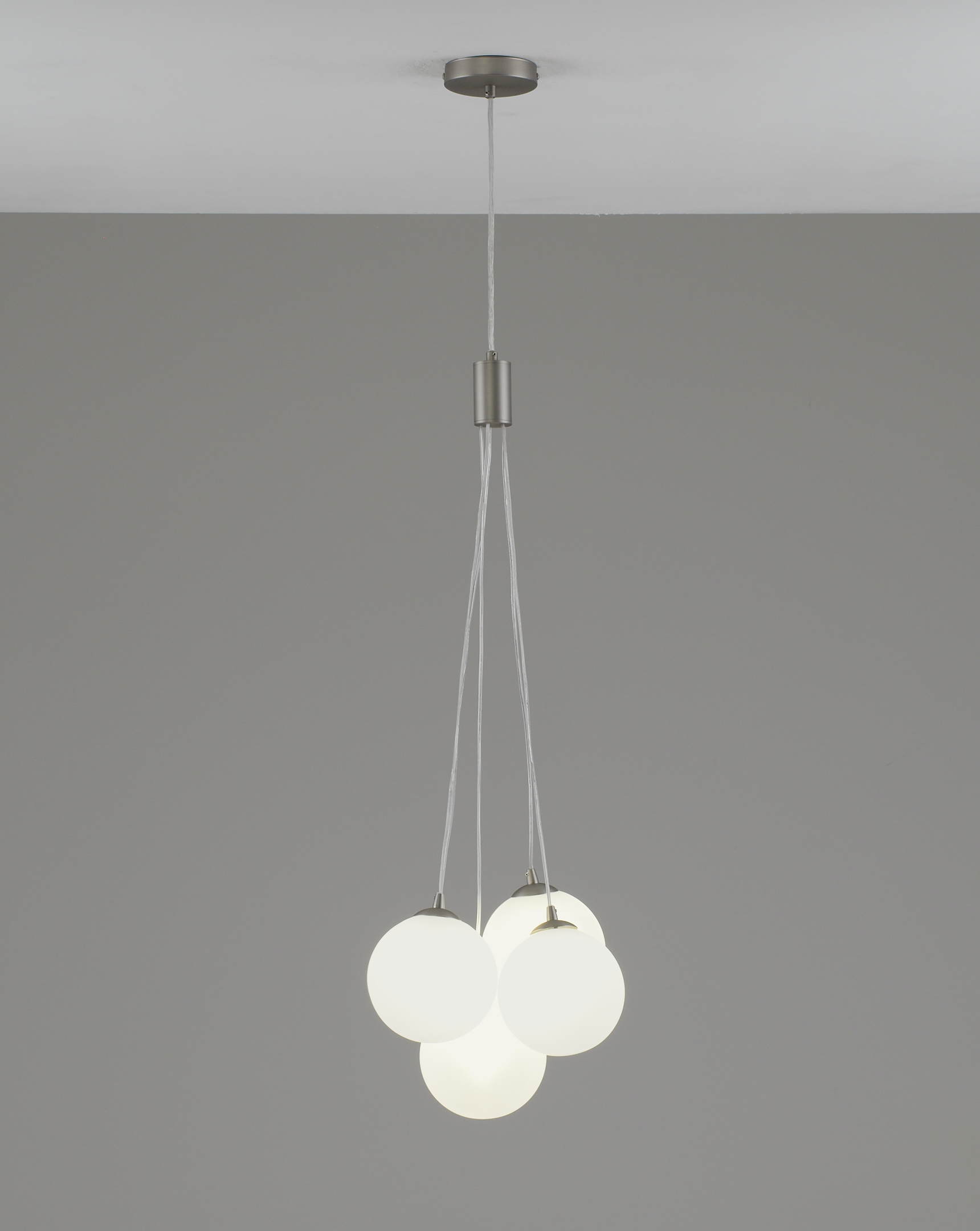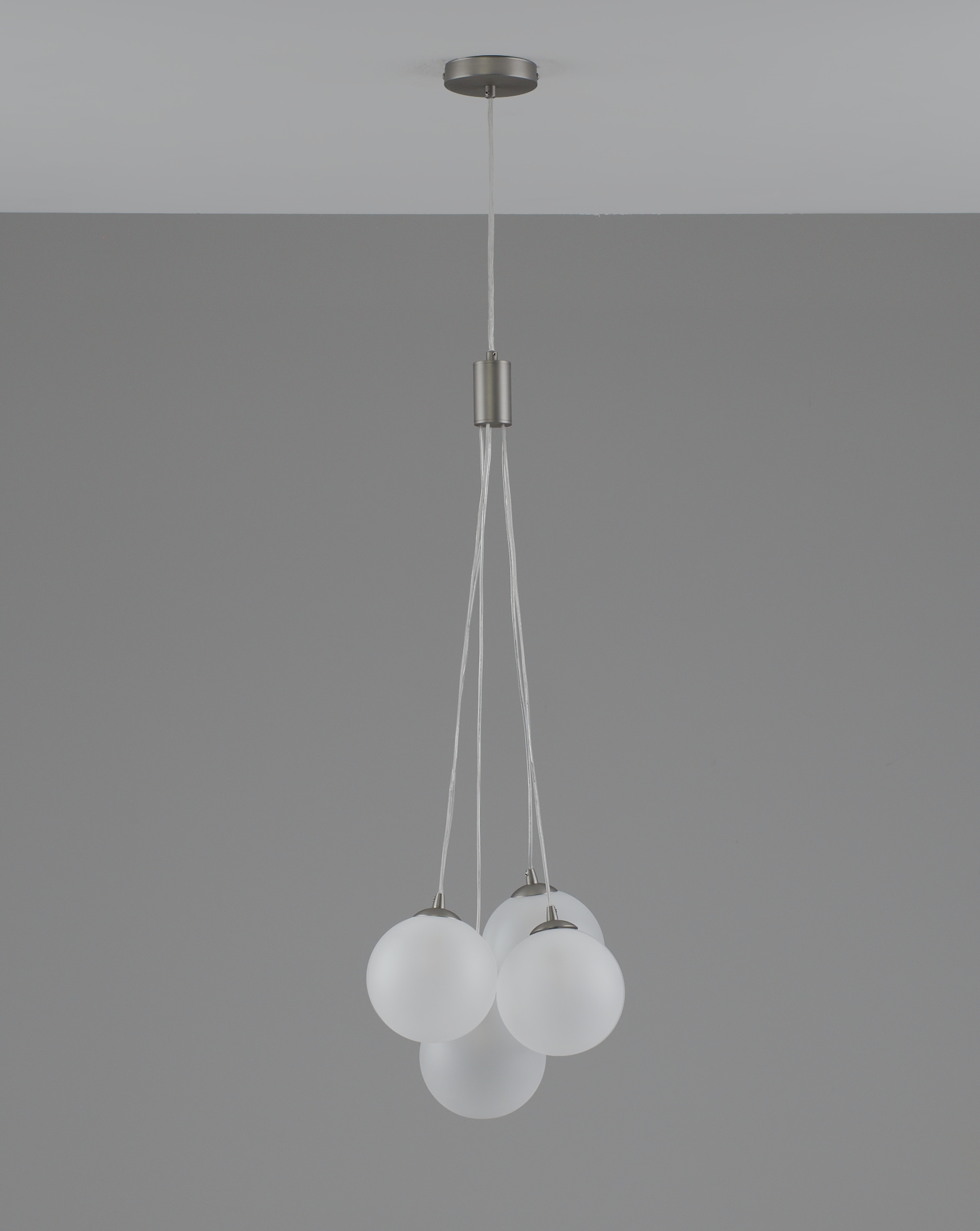 Основа выполнена из металла с матовым хромированным покрытием — устойчивым к царапинам и отпечаткам. Плафоны из матового стекла равномерно распределяют свет, делая освещение мягким и не слепящим.