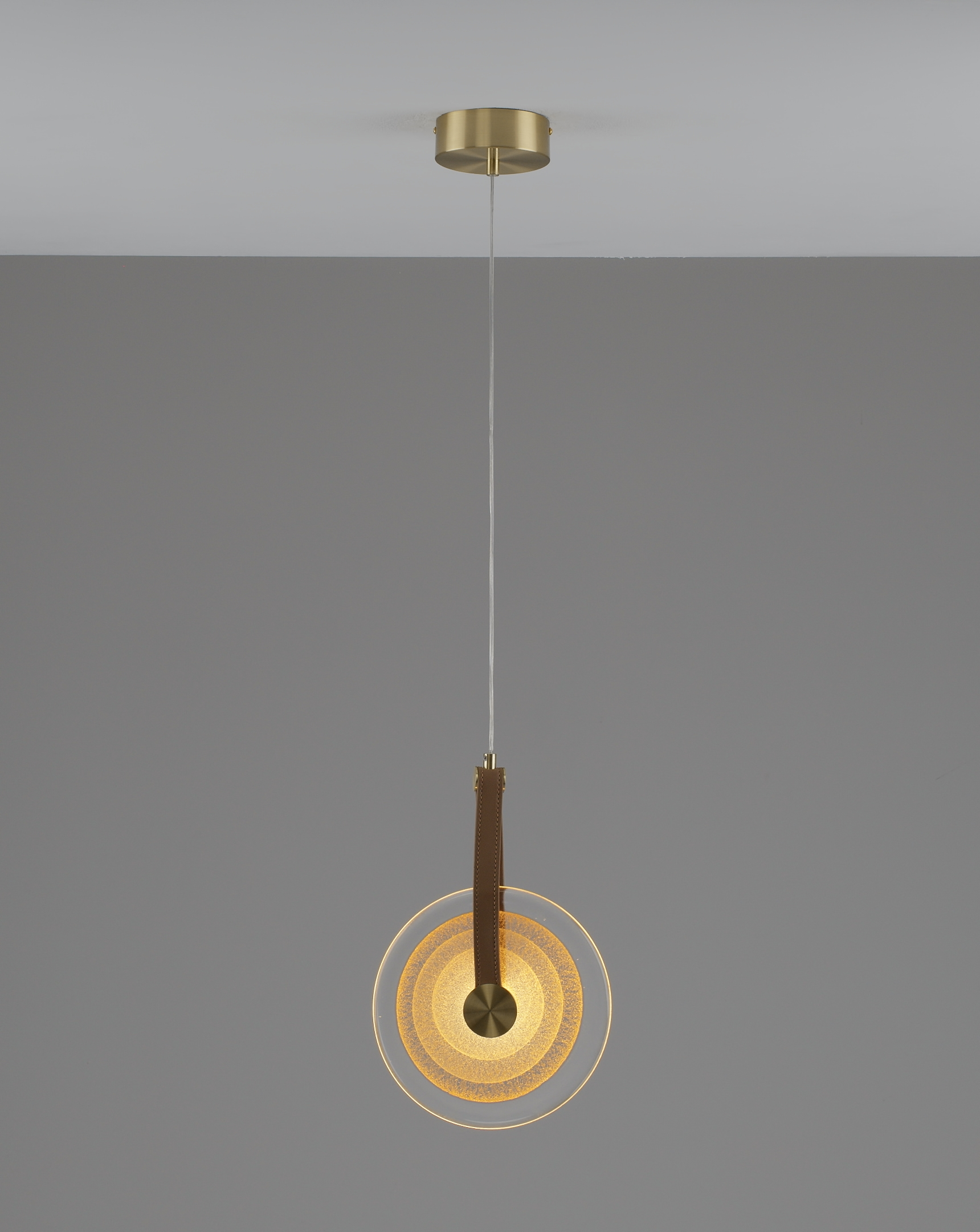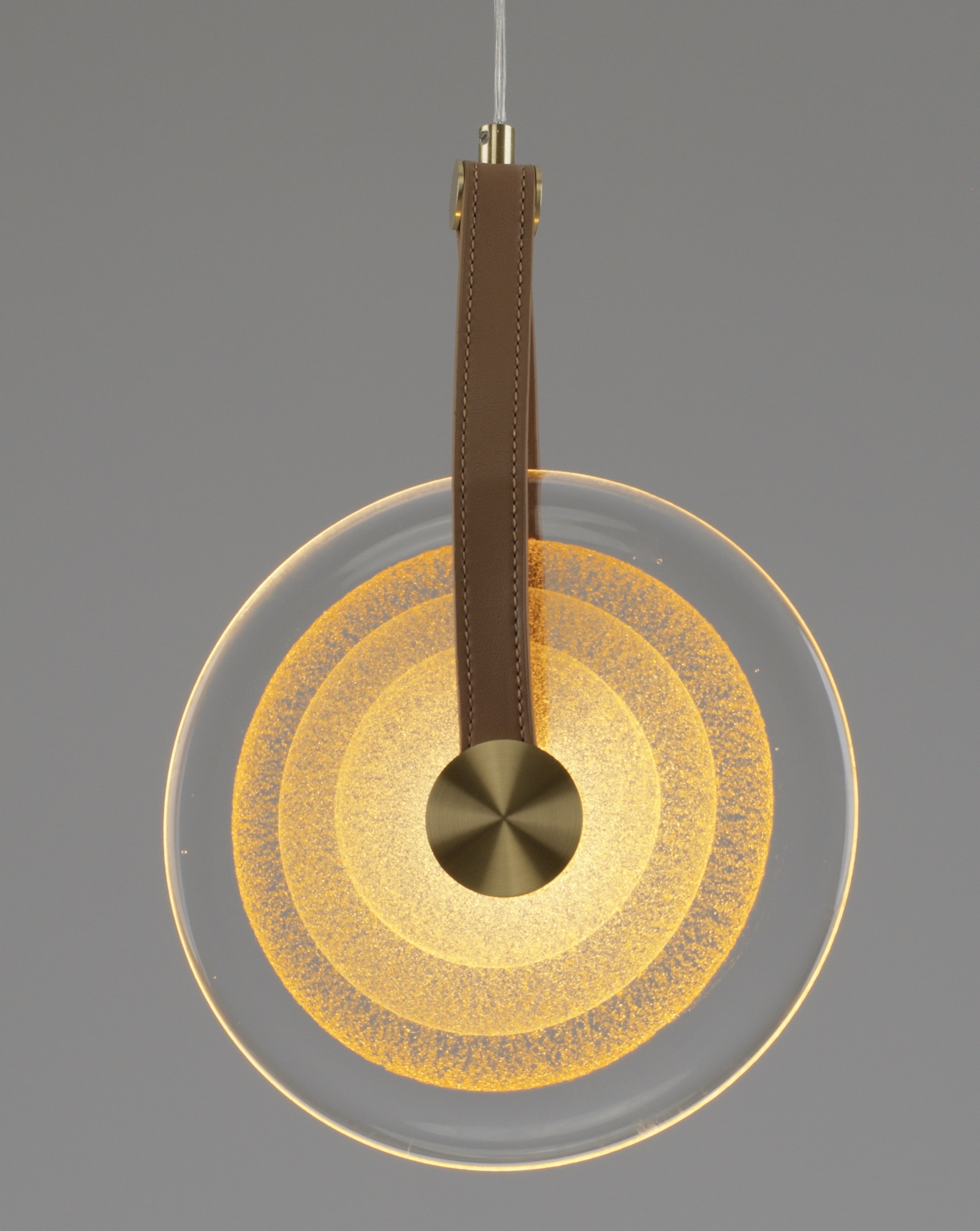Запросить индивидуальное предложениеПодвесной светодиодный светильник Moderli V11680-PL Orbique с золотым стеклом и декором из экокожи