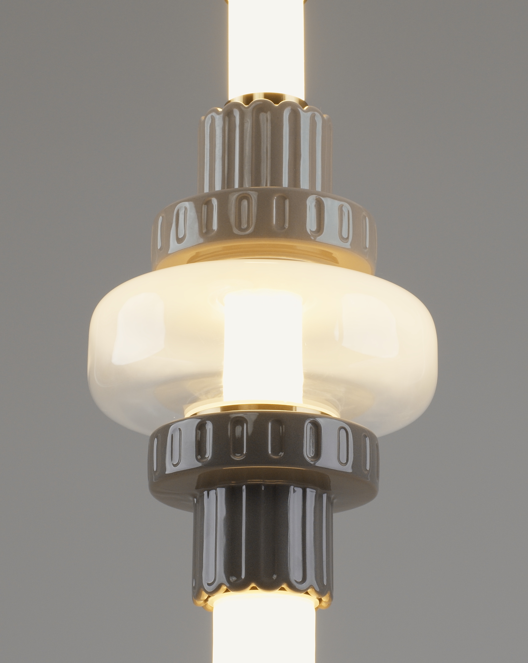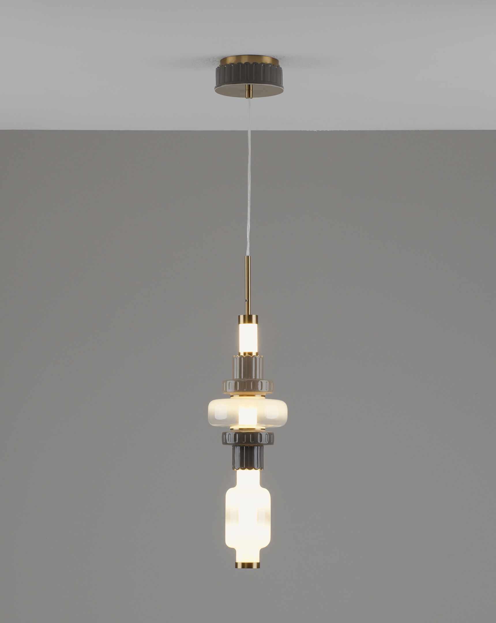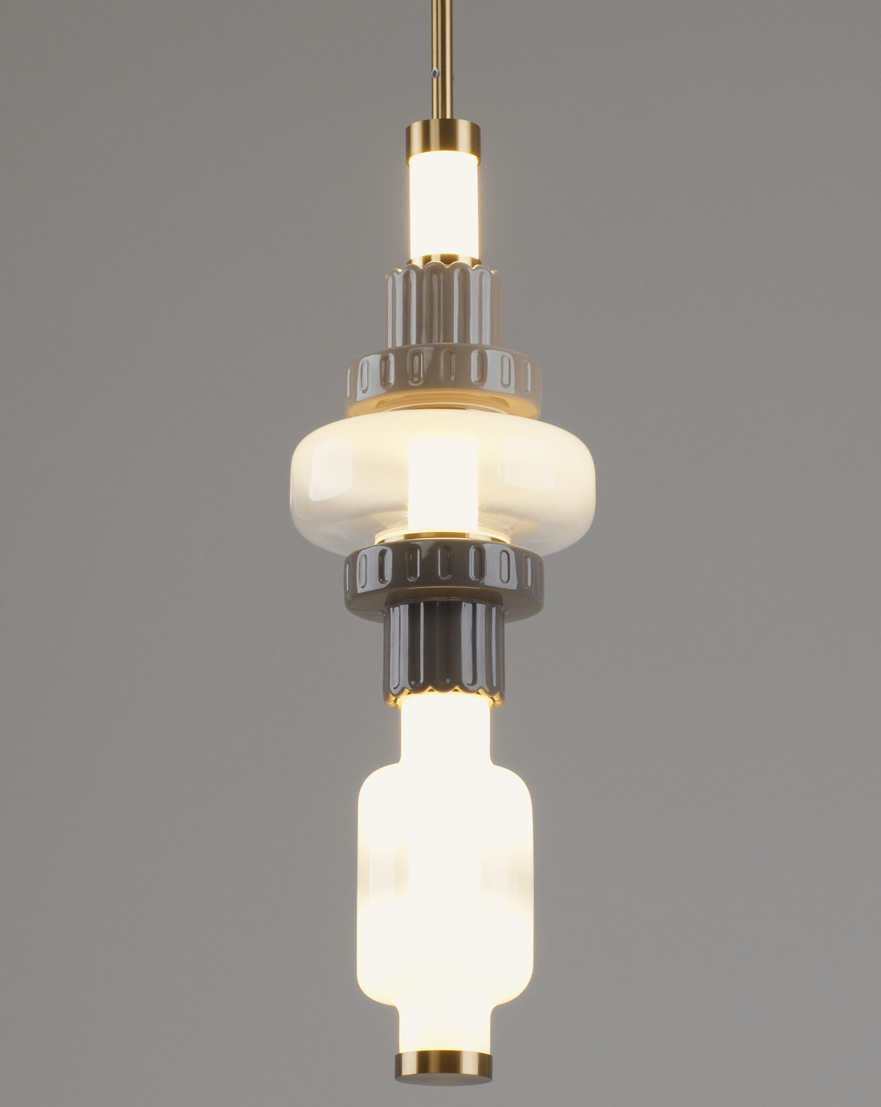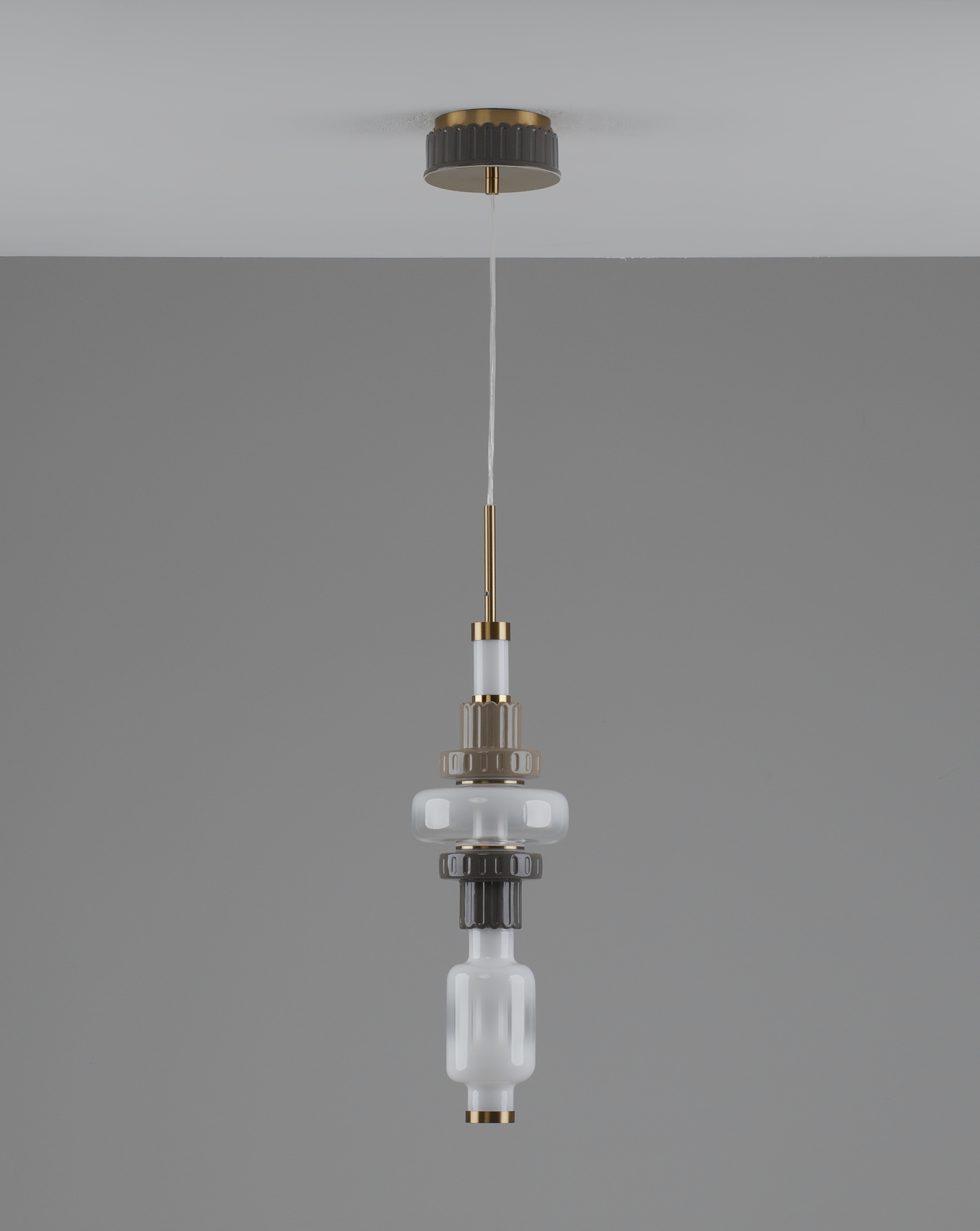 Материалы и эстетика В конструкции использовано сочетание стекла, керамики и металла. Белый стеклянный плафон цилиндрической формы обеспечивает мягкий, тёплый свет, комфортный для глаз. Бронзовые и коричневые элементы корпуса и глянцевая отделка придают светильнику утончённый вид. Декоративные вставки из керамики служат ярким акцентом, подчеркивая уникальность модели.