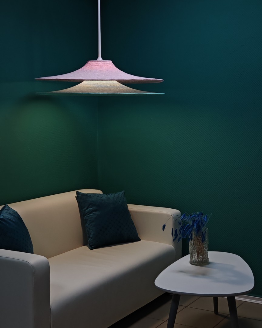 Каждый компонент этого светильника искусно изготовлен вручную талантливыми мастерами. Этот светильник станет прекрасным дополнением над кухонным столом, в кафе или ресторане. Возможны варианты исполнения светильника в однотонном решении, где верхняя и нижняя части выполнены в одном цвете, либо в двухцветном варианте, когда каждая "шляпка" имеет свой индивидуальный оттенок..