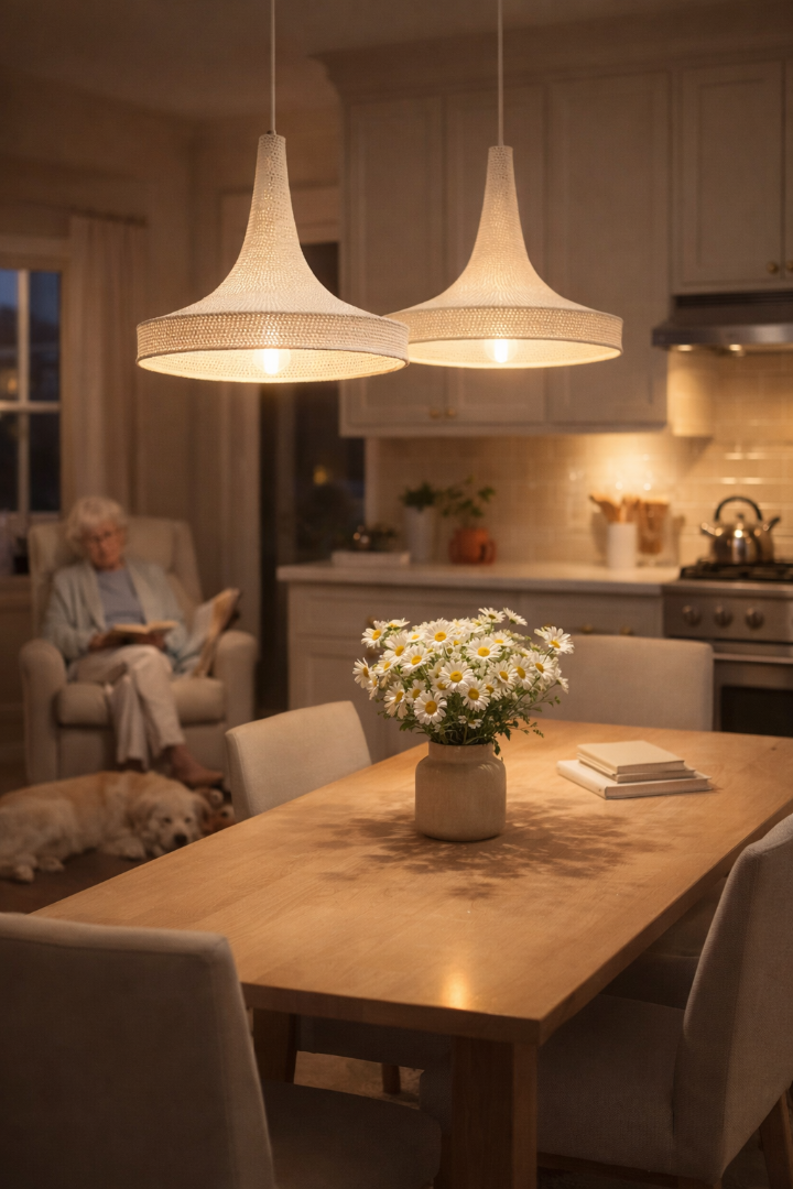 Подвесной светильник «Марокко» — это изысканное творение, выполненное из египетского мерсеризованного хлопка, нежно струящегося и переливающегося в свете.