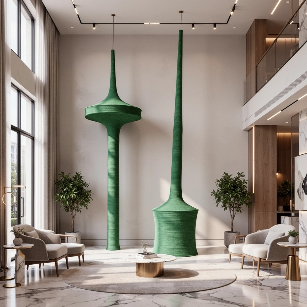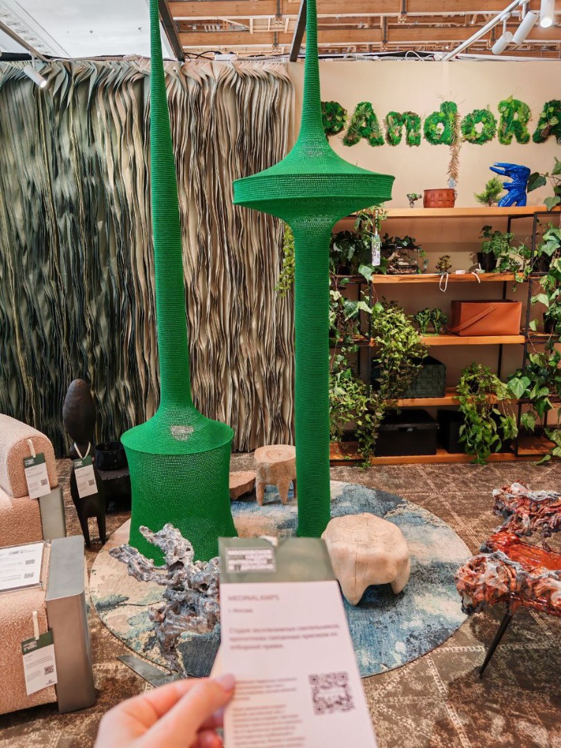 С УДОВОЛЬСТВИЕМ ПРЕДСТАВЛЯЕМ ВАШЕМУ ВНИМАНИЮ ПАРУ УНИКАЛЬНЫХ ПРЕДМЕТОВ ИСКУССТВА, КАЖДЫЙ ИЗ КОТОРЫХ ЯВЛЯЕТСЯ ИСТОЧНИКОМ СВЕТА И ВОЗВЫШАЕТСЯ НА ТРИ МЕТРА. ЭТИ ИСКЛЮЧИТЕЛЬНЫЕ ОСВЕТИТЕЛЬНЫЕ ПРИБОРЫ БЫЛИ С ЛЮБОВЬЮ ИЗГОТОВЛЕНЫ ВРУЧНУЮ ПОСРЕДСТВОМ КРОПОТЛИВОЙ ТЕХНИКИ ВЯЗАНИЯ КРЮЧКОМ УМЕЛЫМ РЕМЕСЛЕННИКОМ В ТЕЧЕНИЕ ПОЛУТОРА МЕСЯЦЕВ.