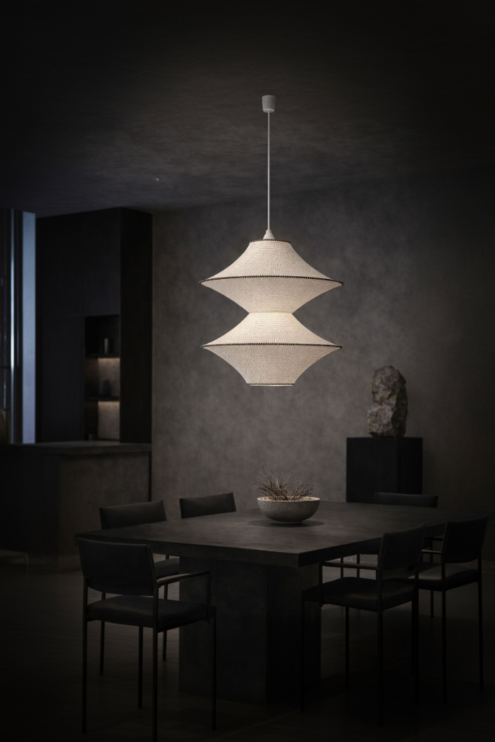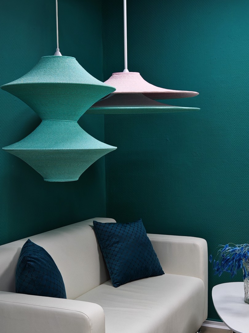 Созданный вручную с использованием пряжи и крючка, он олицетворяет искусство и тепло ручной работы. Светильники из коллекции "Восточная Звезда" мягко рассеивают свет, формируя изящные световые узоры.