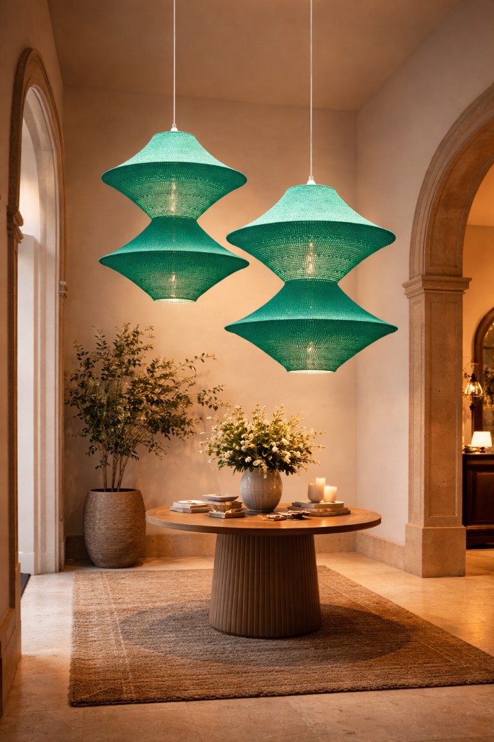 Созданный вручную с использованием пряжи и крючка, он олицетворяет искусство и тепло ручной работы. Светильники из коллекции "Восточная Звезда" мягко рассеивают свет, формируя изящные световые узоры.