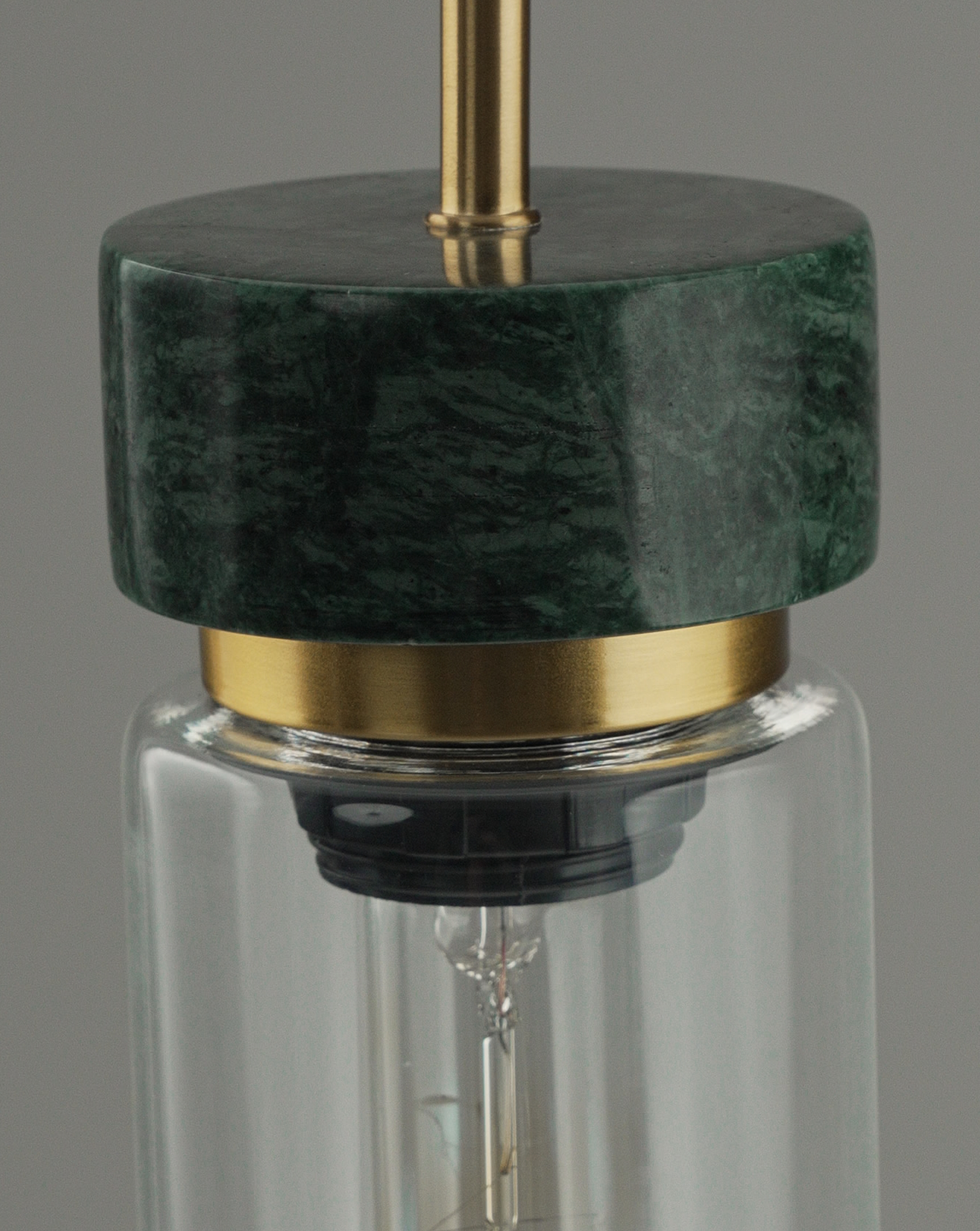 Модель Almero сочетает в себе изящество стекла, роскошь золотистого металла и природную текстуру мрамора. Его цилиндрический плафон из стекла подчеркивает лампу внутри, создавая эффект декоративной подсветки. Зеленый мрамор и золотая арматура придают светильнику выразительность и статусность.