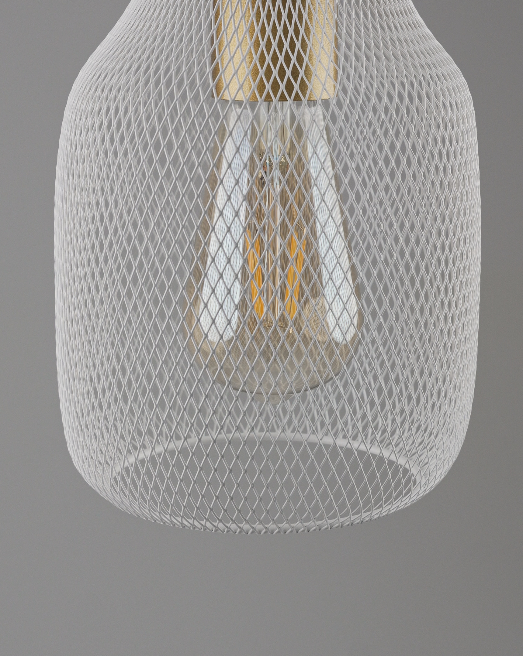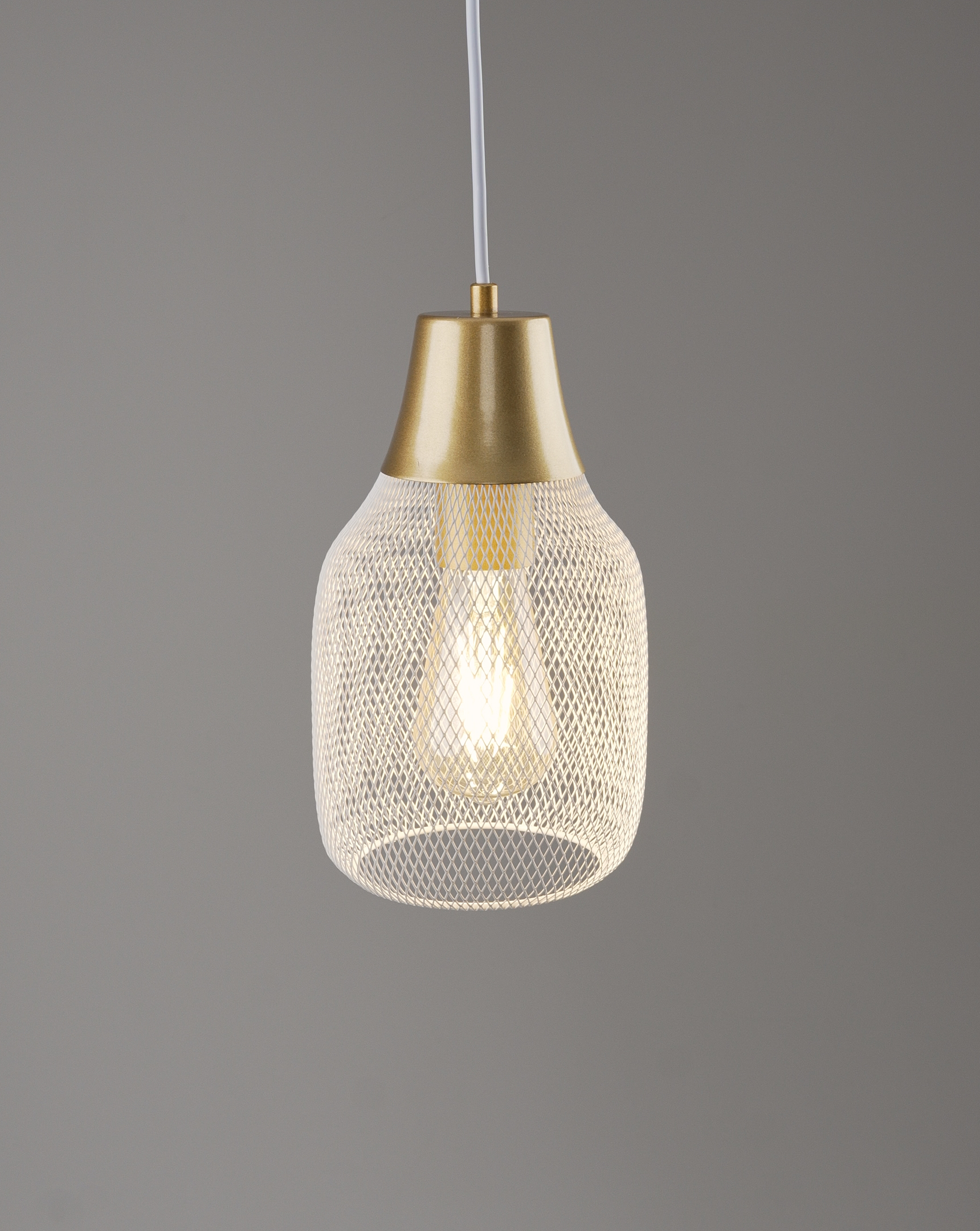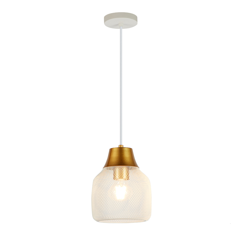 Светильник коллекции Adalina сочетает в себе белый металлический плафон с сетчатой структурой и белую арматуру в сочетании с золотистыми элементами. Его форма напоминает вытянутую каплю с плавными изгибами, создающими мягкий и уютный образ. Матовая поверхность добавляет строгости и стильности.