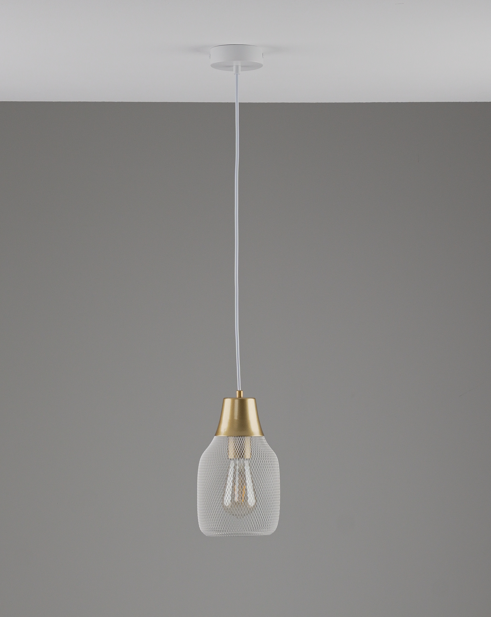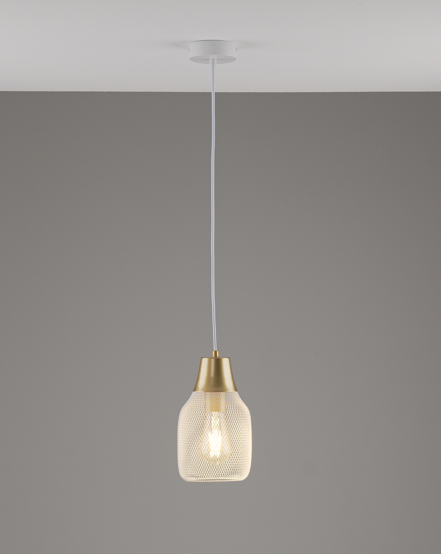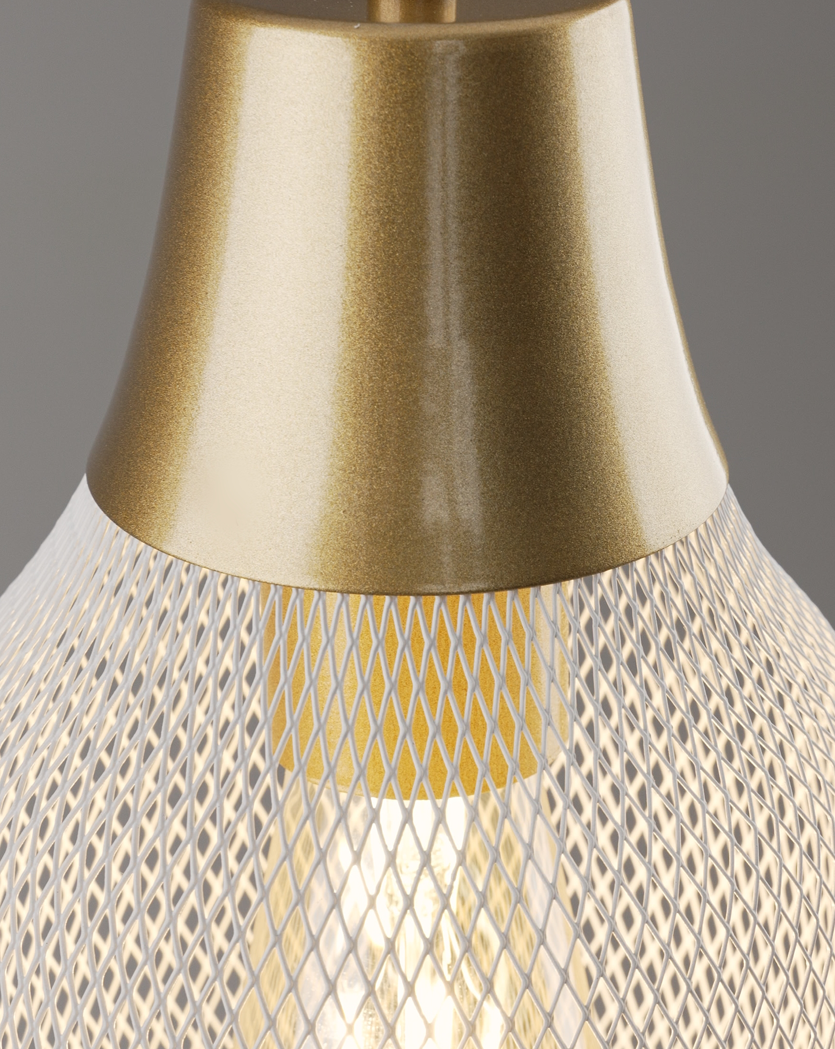 Светильник коллекции Adalina сочетает в себе белый металлический плафон с сетчатой структурой и белую арматуру в сочетании с золотистыми элементами. Его форма напоминает вытянутую каплю с плавными изгибами, создающими мягкий и уютный образ. Матовая поверхность добавляет строгости и стильности.