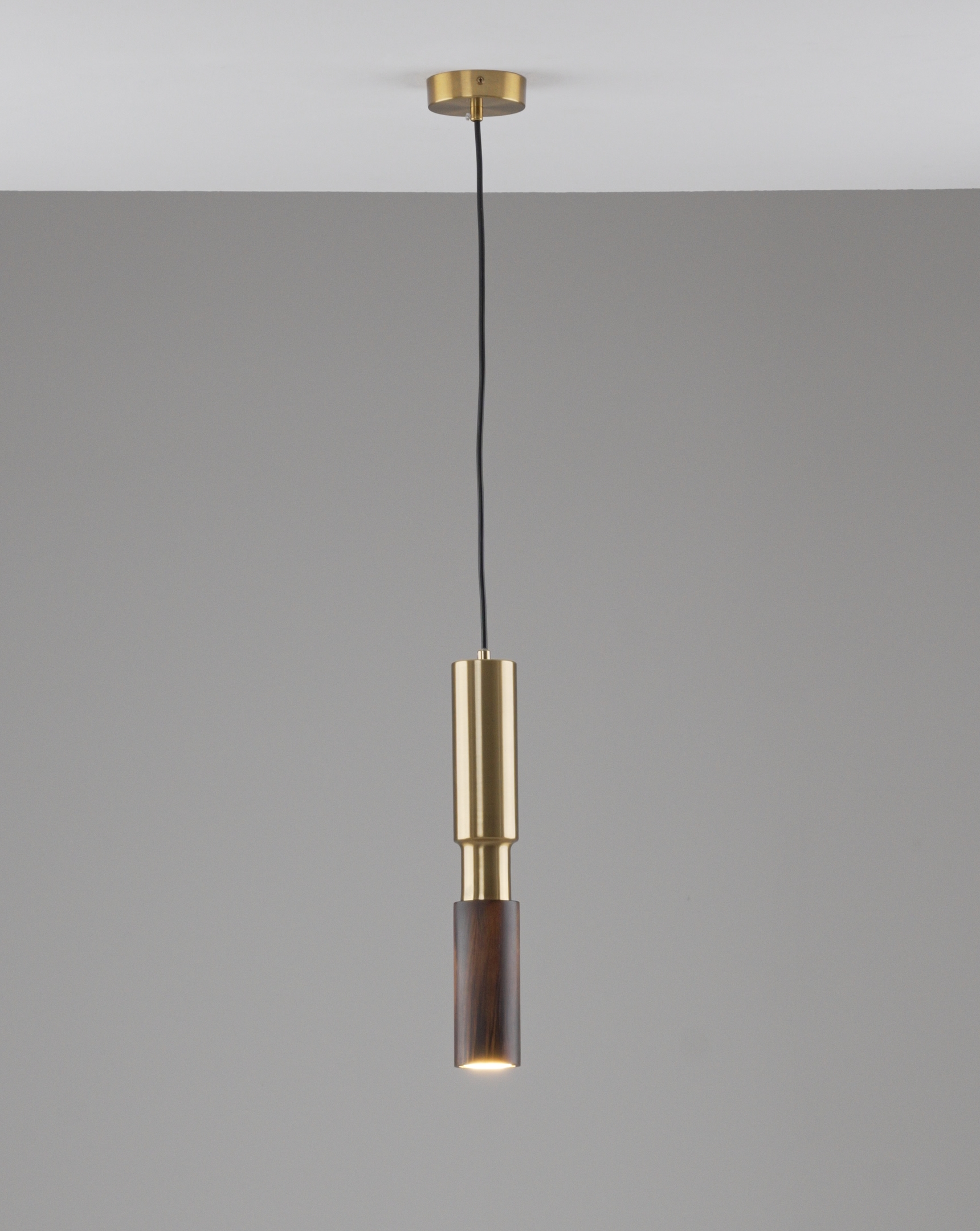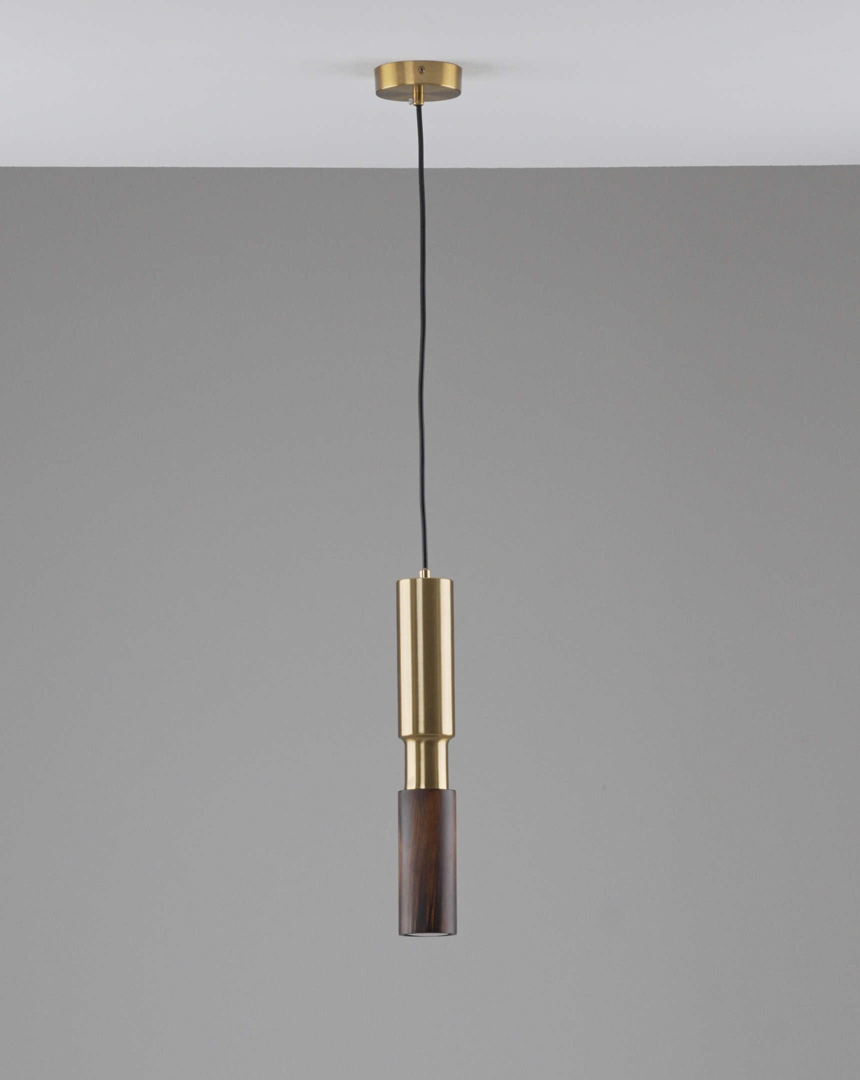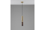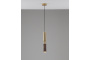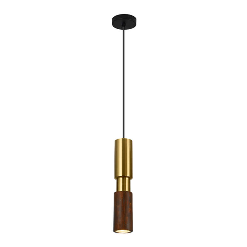 Корпус и плафон выполнены из прочного металла в золотистом оттенке и дополнены элементами из натурального дерева. Такое сочетание не только эстетично, но и долговечно. Цилиндрическая форма плафона направляет свет вниз, создавая уютное локальное освещение, которое идеально подходит для небольших зон.