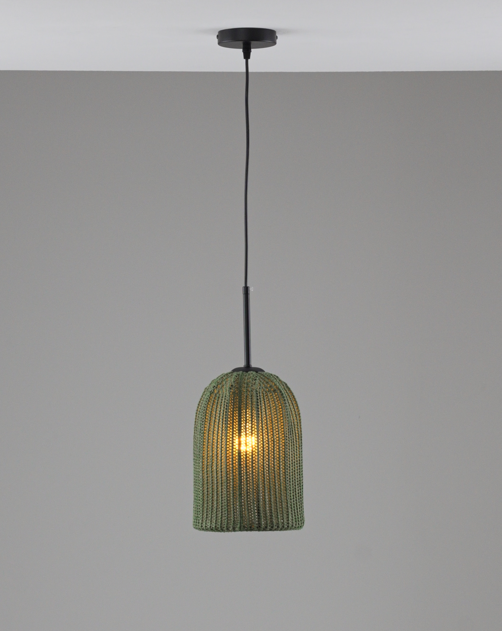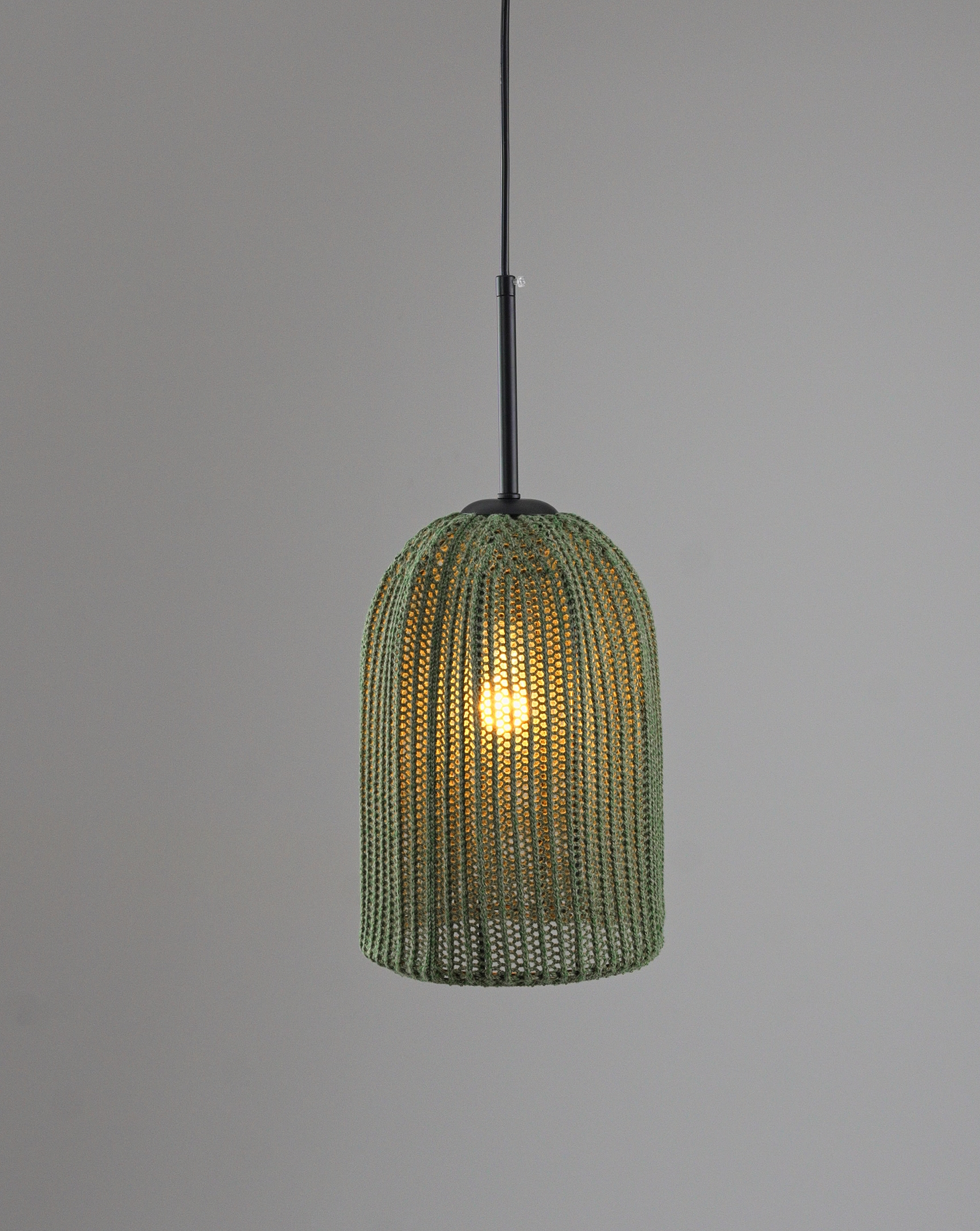 Модель Yarn с абажуром из фактурной пряжи в трендовом зеленом оттенке привносит природную свежесть и текстурное разнообразие в интерьер. Такой декор создает мягкий рассеянный свет и добавляет ощущение спокойствия и уюта.