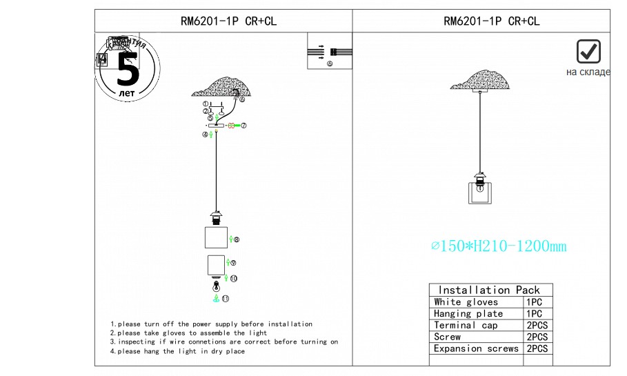 Светильник настенный iLamp King RM6201-1P CR+CL