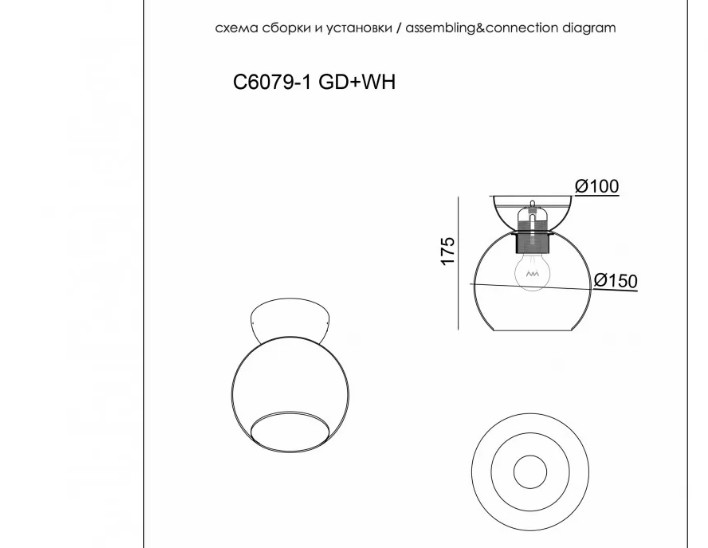 Светильник потолочный iLamp Mono C6079-1 BK+SM
