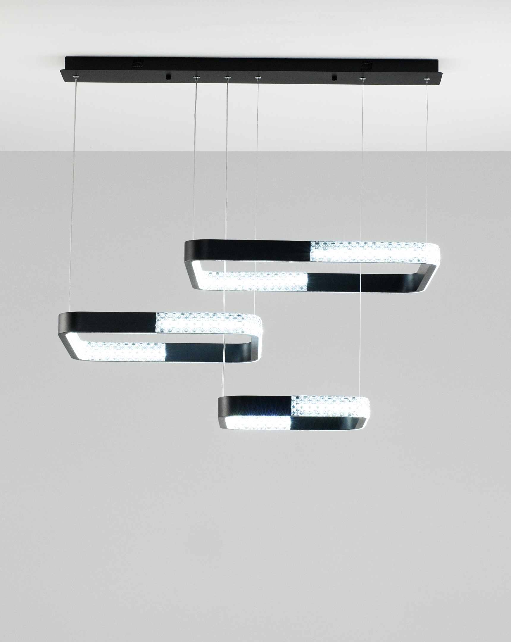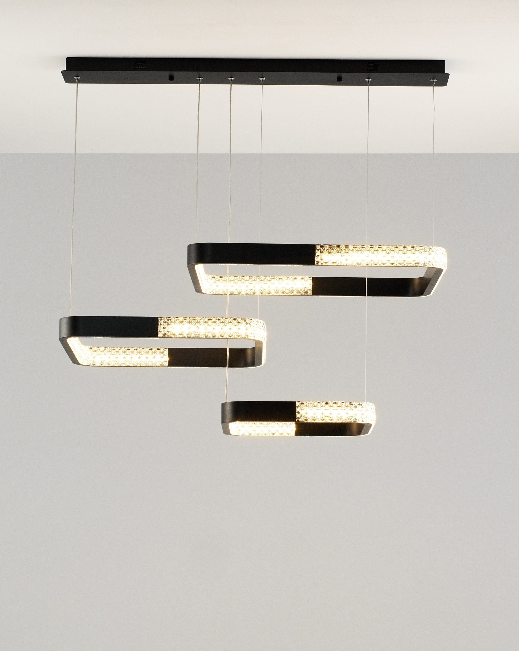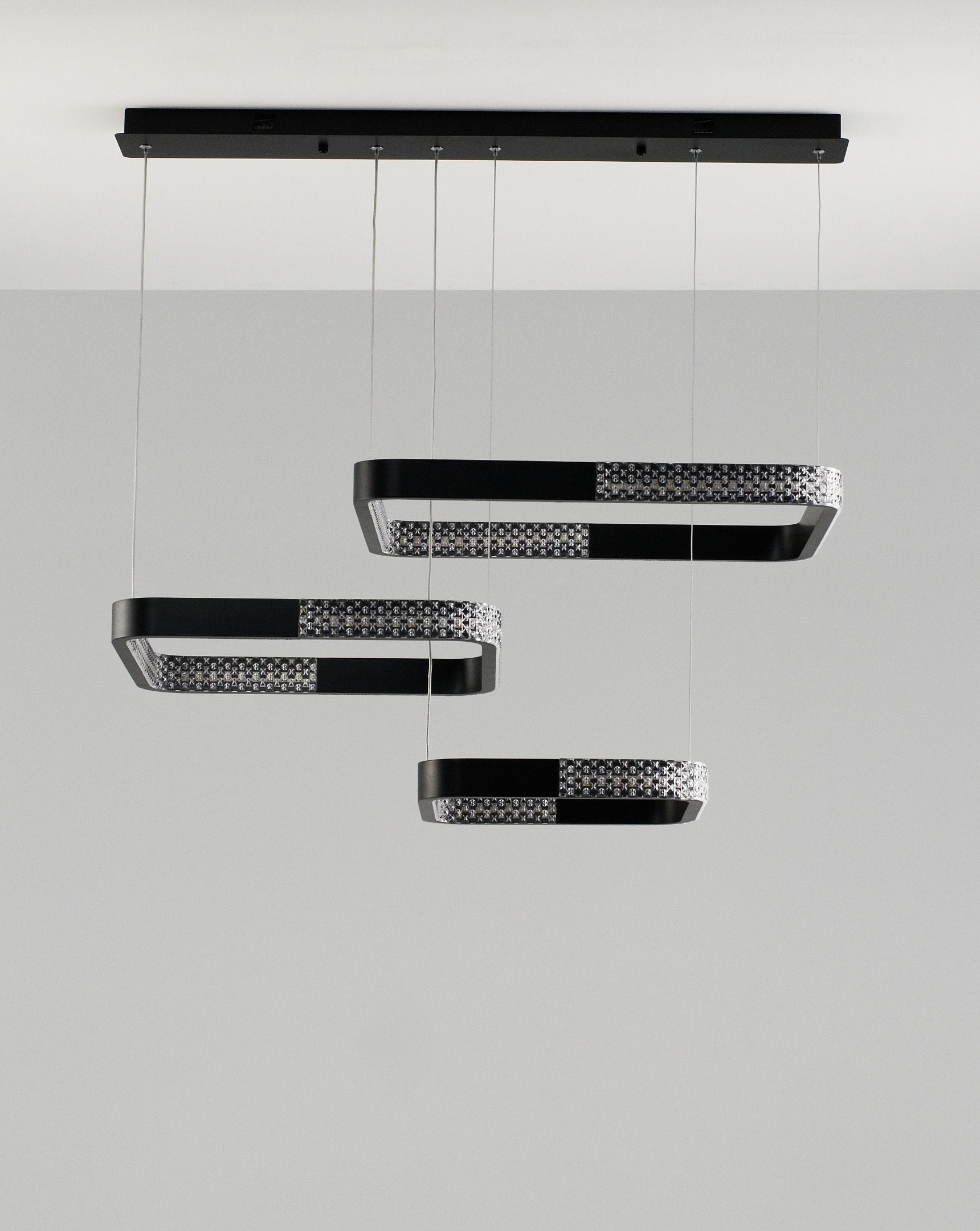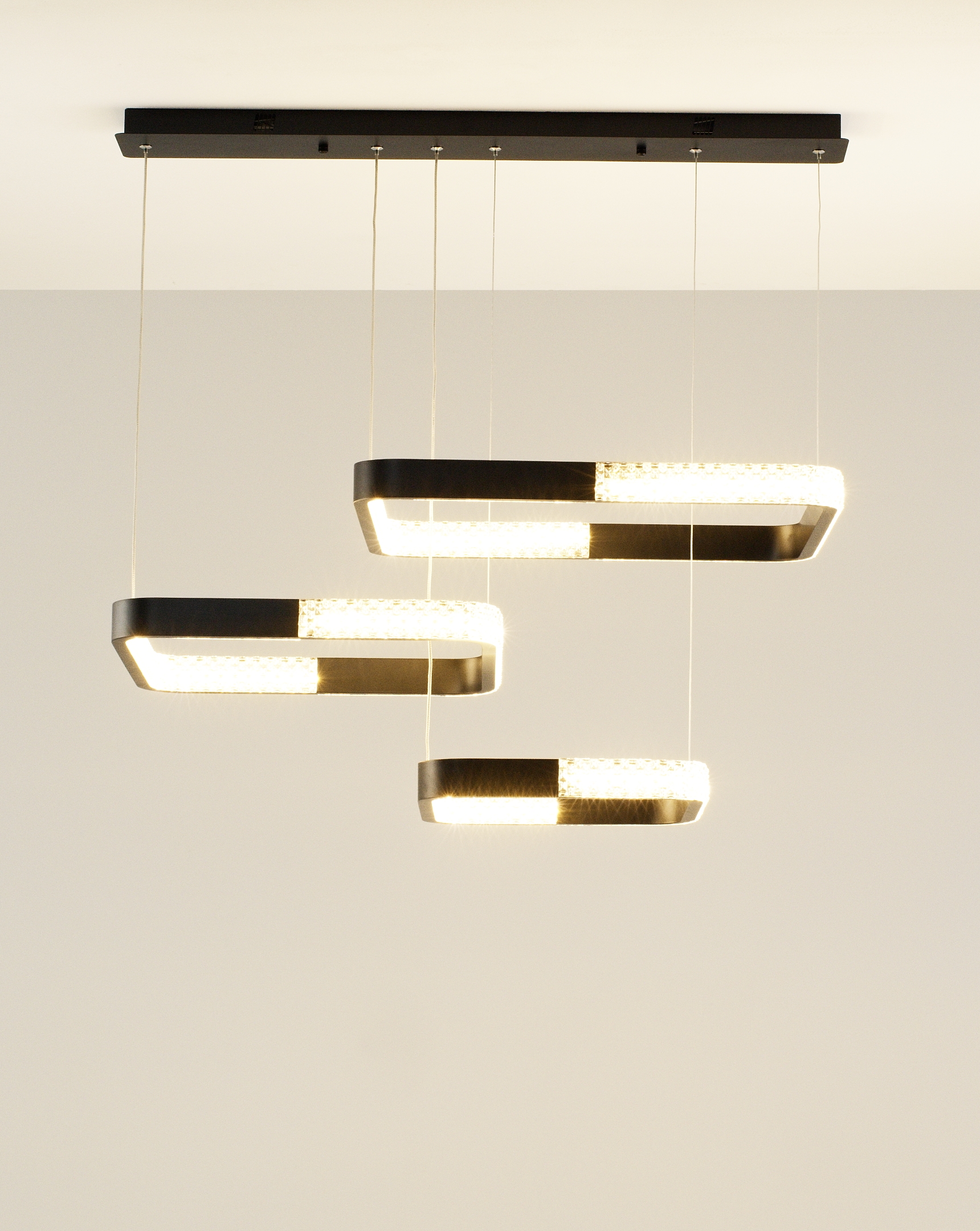 Запросить индивидуальное предложениеСтильный подвесной светильник из серии Novas с пультом управления. Рама в виде геометрических фигур из алюминиевого профиля с матовым покрытием. Основным источником света служит светодиодная лента мощностью 154 Вт и со световым потоком 6460 Лм. Сочетание цветов и формы светильника в стиле Арт-деко отлично дополнит любое интерьерное решение. Благодаря пульту управления можно настроить интенсивность света и цветовую температуру в пределах 3000K-6500K . Данная модель подойдёт для освещения кухни, гостиной и комнаты отдыха. При монтаже светильника можно отрегулировать высоту с помощью подвесных тросов.