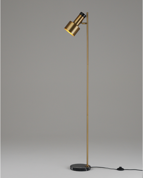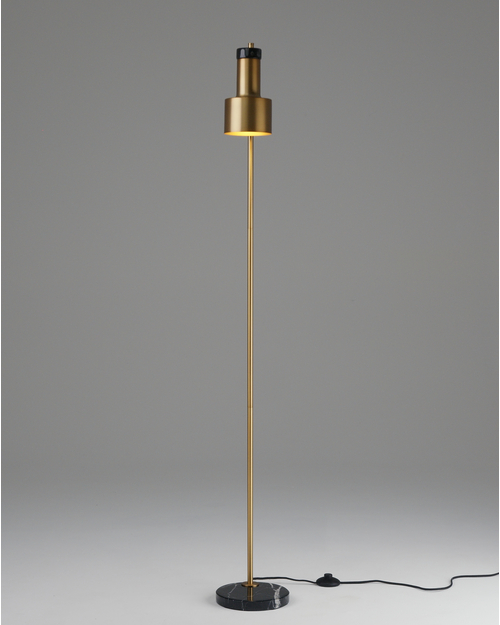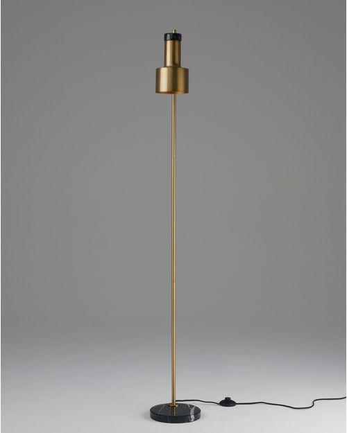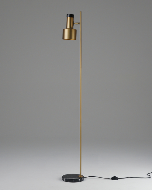 Запросить индивидуальное предложениеДизайн и материалы. Торшер Goldy — это сочетание утонченного латунного корпуса и эффектного черного мраморного основания. Плафон, выполненный в форме цилиндра, также декорирован вставкой из мрамора, что придает светильнику особый шарм и делает его выразительным элементом интерьера.
