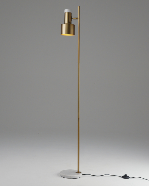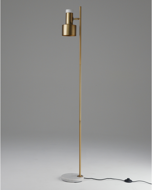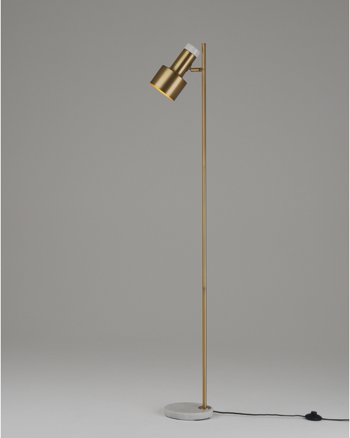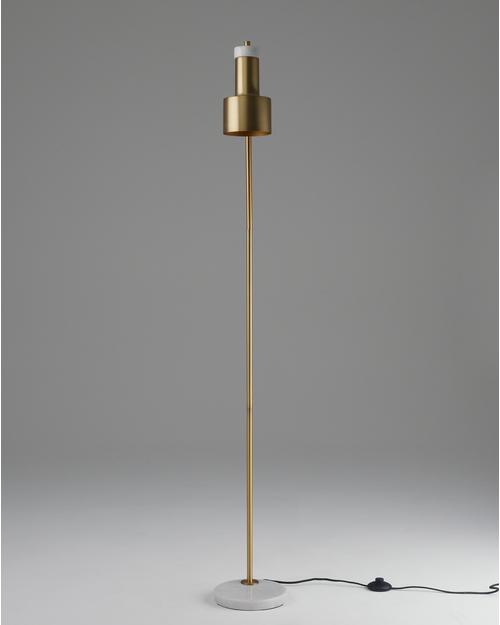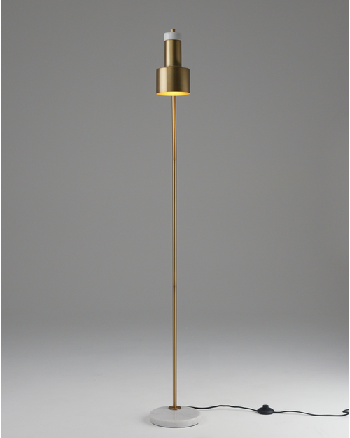 Запросить индивидуальное предложениеДизайн и материалы. Торшер Goldy — это сочетание утонченного латунного корпуса и эффектного белого мраморного основания. Плафон, выполненный в форме цилиндра, также декорирован вставкой из мрамора, что придает светильнику особый шарм и делает его выразительным элементом интерьера.