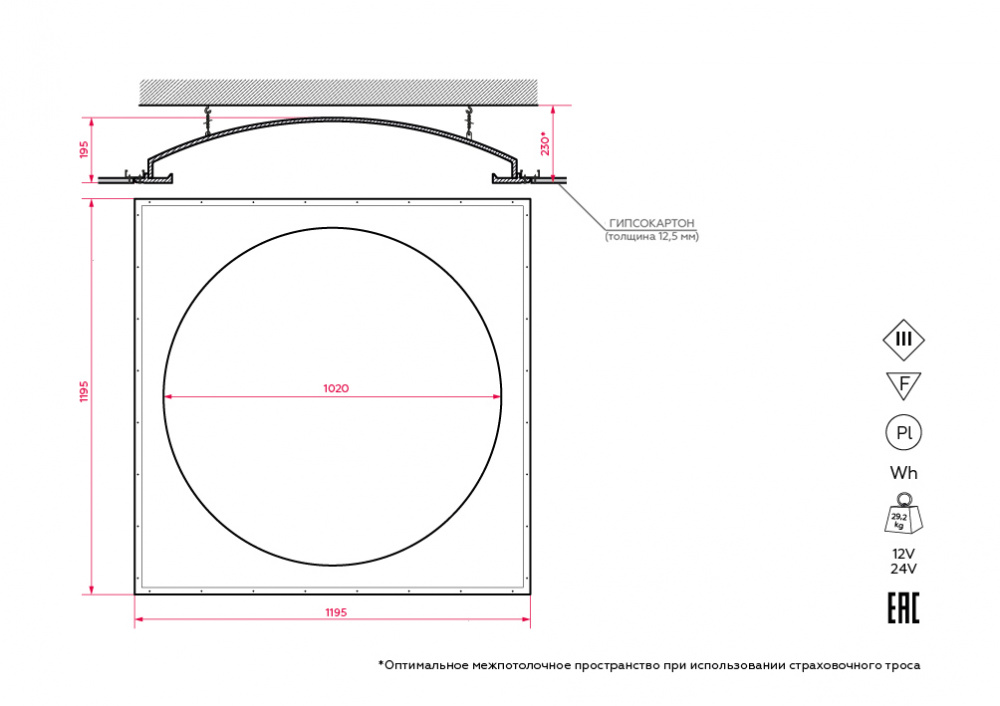 Встраиваемый купольный гипсовый светильник SN 420