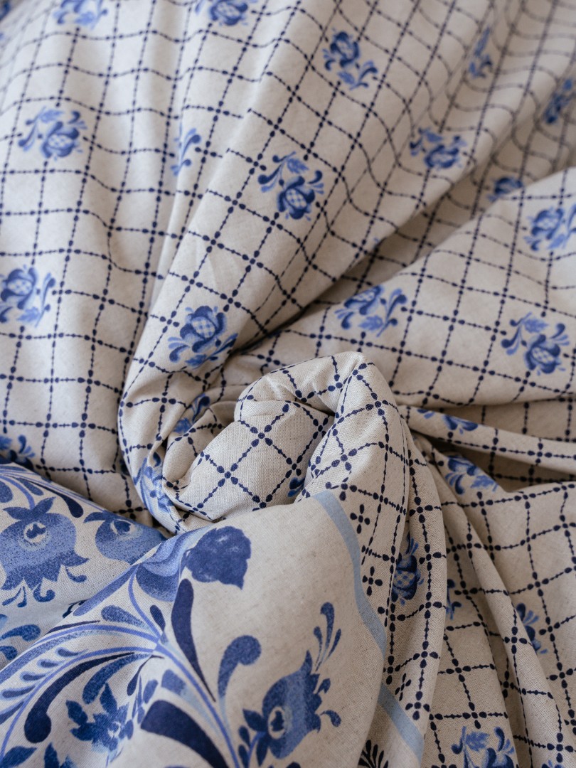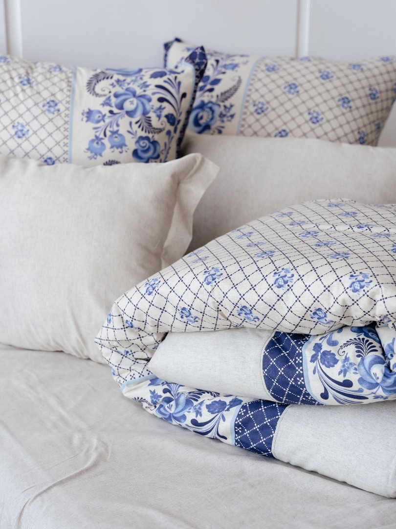 Комплект постельного белья Лен Евро Гжель