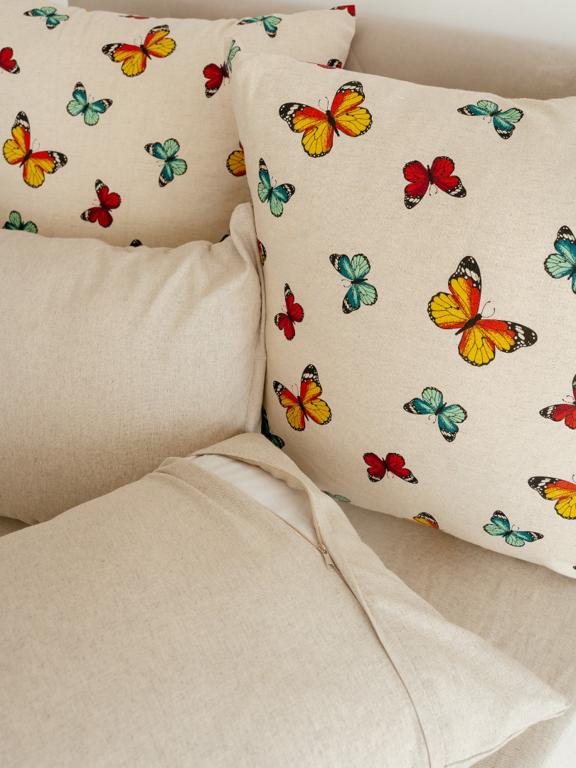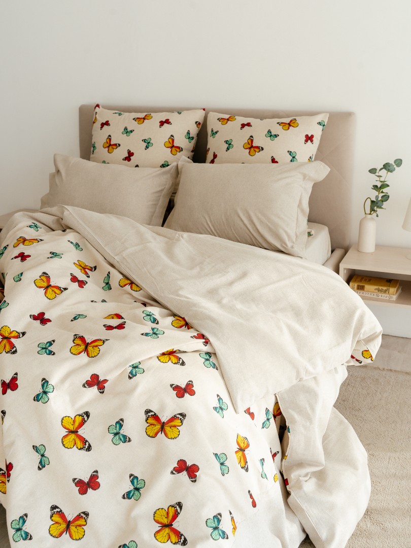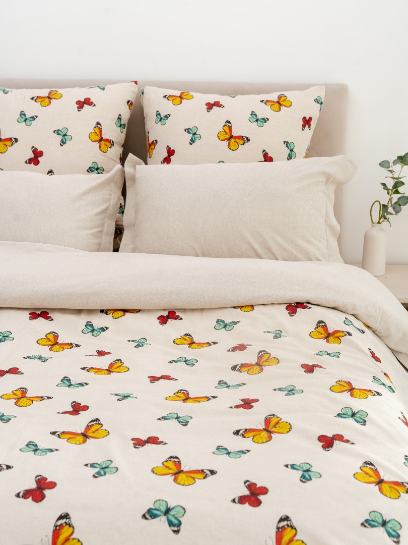 Комплект постельного белья Лен Евро Бабочки с Простыней на резинке