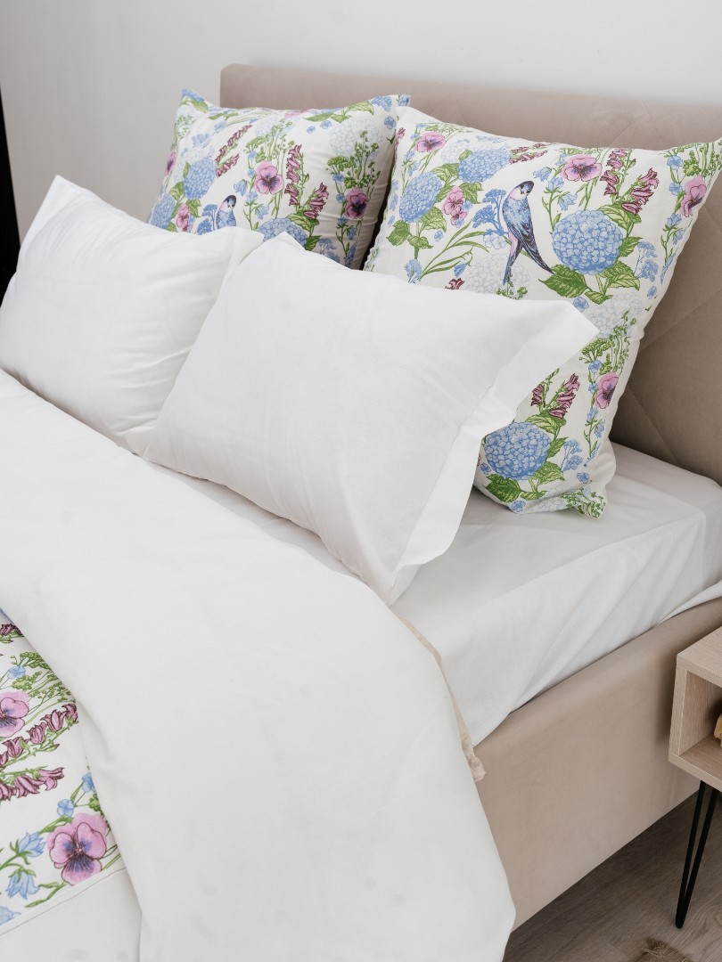 Комплект постельного белья Лен Семейный Цветы с Простыней на резинкеп
