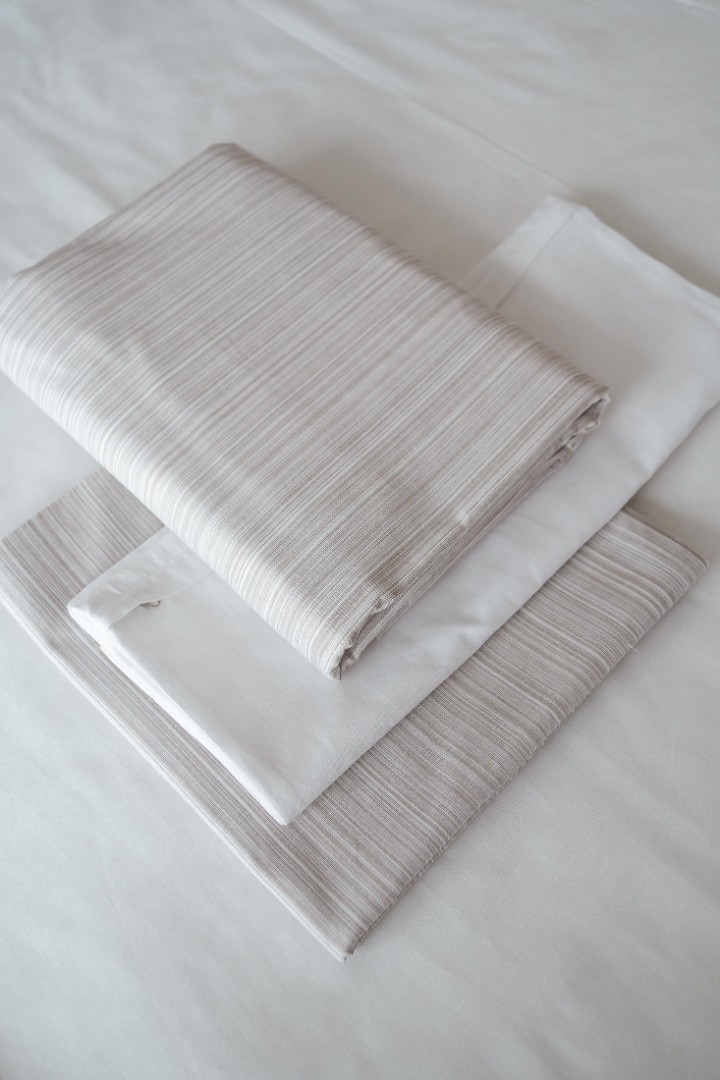Комплект постельного белья Лен Евро Бежевая полоска