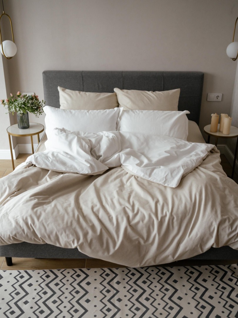 Запросить индивидуальное предложениеЕдинственная в своем роде расцветка в России Размер Евро: Пододеяльник на увеличенной молнии: 200х216 см Простыня: 240х216 см Наволочки на молнии: 70х70 см - без ушек (2шт) 50х70 см - сушками (2 шт) В комплект входит сумка-шоппер (упаковка) ВНИМАНИЕ: 1. Лен - полностью натуральная ткань и может содержать вкрапления, это не брак, это нормально для этой ткани 2. Лен - это не сатиновая группа, он другой на ощупь Представляем вам дизаййнерские комплекты постельного белья из натурального льна, в стиле аля-рус. Эти изделия созданы для тех, кто ценит комфорт, качество и заботу о своем здоровье. Почему стоит выбрать лен? Лен — это натуральный материал, который обладает уникальными свойствами: - Гипоаллергенность: подходит даже для самой чувствительной кожи. - Долговечность: лен сохраняет свои свойства долгие годы, становясь мягче после каждой стирки. - Терморегуляция: лен помогает поддерживать оптимальную температуру тела зимой и летом, создавая ощущение прохлады в жаркую погоду и согревая в холодную. Преимущества наших комплектов 1. Экологичность. Мы используем только натуральные материалы, чтобы вы могли наслаждаться здоровым сном без вреда для окружающей среды. 2. Эстетика. Наши дизайны разработаны с учетом современных трендов и классических стилей, чтобы идеально вписаться в любой интерьер спальни. 3. Высокое качество пошива. Каждый шов выполнен с особой тщательностью, чтобы обеспечить долговечность и прочность изделий. 4. Широкий ассортимент. В нашем каталоге представлены различные размеры и расцветки, чтобы каждый нашел себе комплект по душе. С Уважением команда, Russian Soul