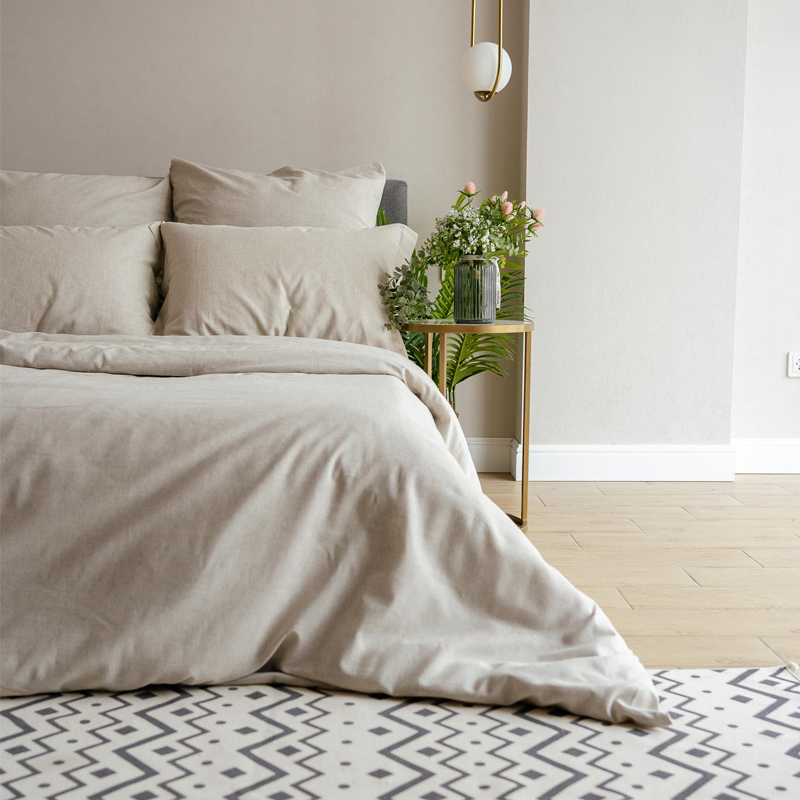Комплект постельного белья Лен Евро Бежевый
