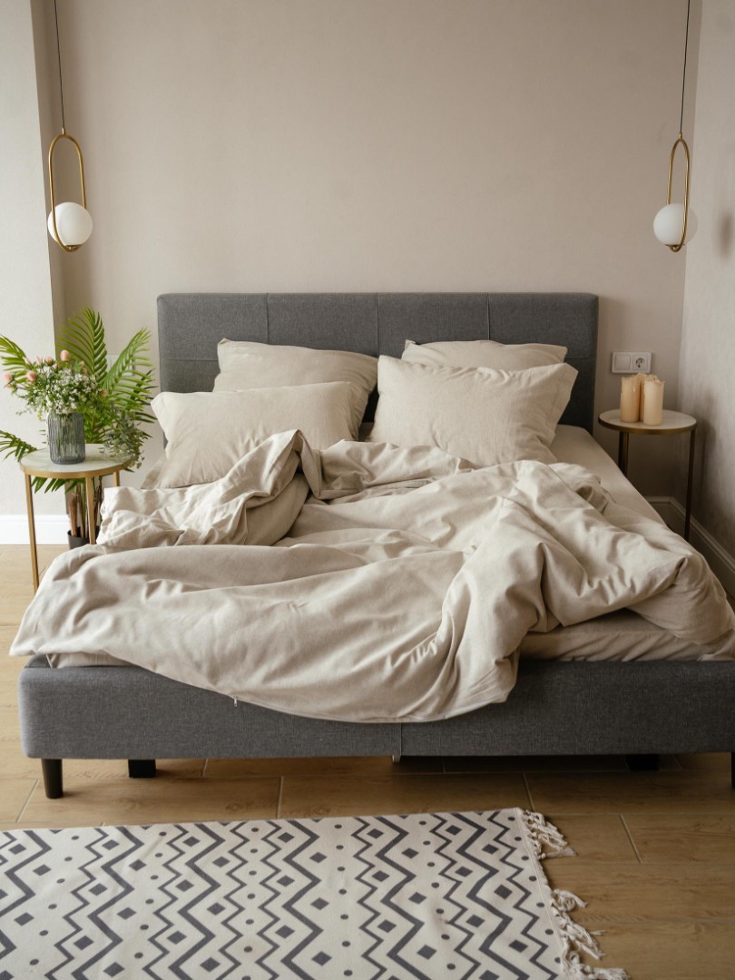Запросить индивидуальное предложениеЕдинственная в своем роде расцветка в России Размер Семейный: Пододеяльник на увеличенной молнии: 147х216 (2 шт) Простыня: 240х216 см Наволочки на молнии: 70х70 см - без ушек (2шт) 50х70 см - сушками (2 шт) В комплект входит сумка-шоппер (упаковка) ВНИМАНИЕ: 1. Лен - полностью натуральная ткань и может содержать вкрапления, это не брак, это нормально для этой ткани 2. Лен - это не сатиновая группа, он другой на ощупь Представляем вам дизаййнерские комплекты постельного белья из натурального льна, в стиле аля-рус. Эти изделия созданы для тех, кто ценит комфорт, качество и заботу о своем здоровье. Почему стоит выбрать лен? Лен — это натуральный материал, который обладает уникальными свойствами: - Гипоаллергенность: подходит даже для самой чувствительной кожи. - Долговечность: лен сохраняет свои свойства долгие годы, становясь мягче после каждой стирки. - Терморегуляция: лен помогает поддерживать оптимальную температуру тела зимой и летом, создавая ощущение прохлады в жаркую погоду и согревая в холодную. Преимущества наших комплектов 1. Экологичность. Мы используем только натуральные материалы, чтобы вы могли наслаждаться здоровым сном без вреда для окружающей среды. 2. Эстетика. Наши дизайны разработаны с учетом современных трендов и классических стилей, чтобы идеально вписаться в любой интерьер спальни. 3. Высокое качество пошива. Каждый шов выполнен с особой тщательностью, чтобы обеспечить долговечность и прочность изделий. 4. Широкий ассортимент. В нашем каталоге представлены различные размеры и расцветки, чтобы каждый нашел себе комплект по душе. С Уважением команда, Russian Soul