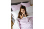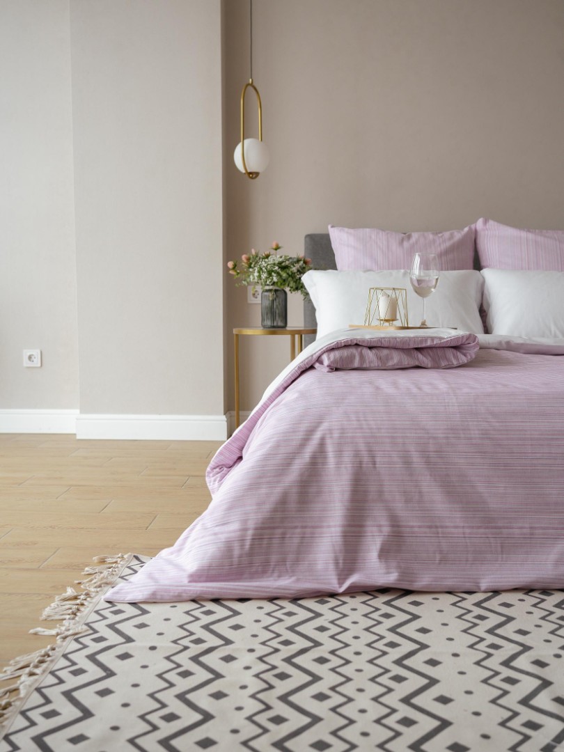 Комплект постельного белья Лен Евро Бело-розовая полоска с Простыней на резинке