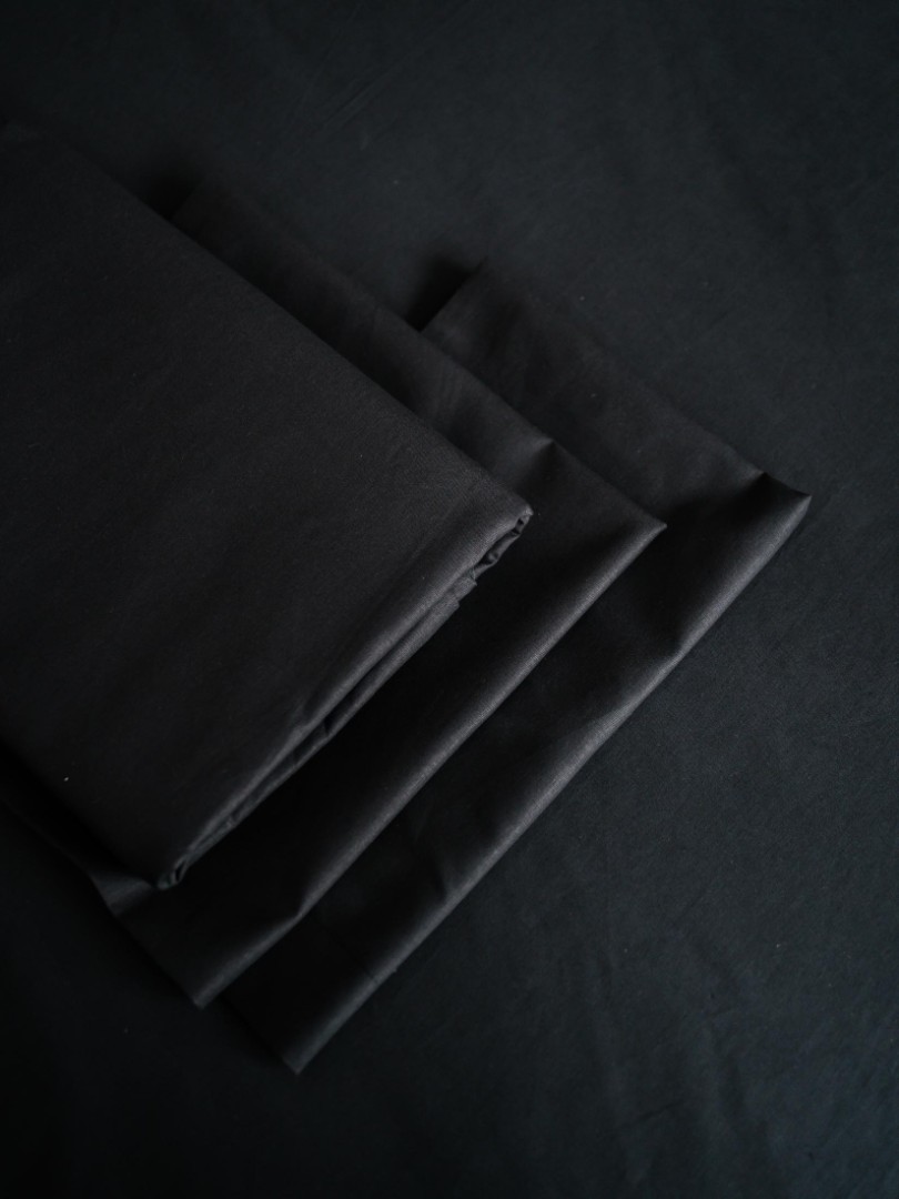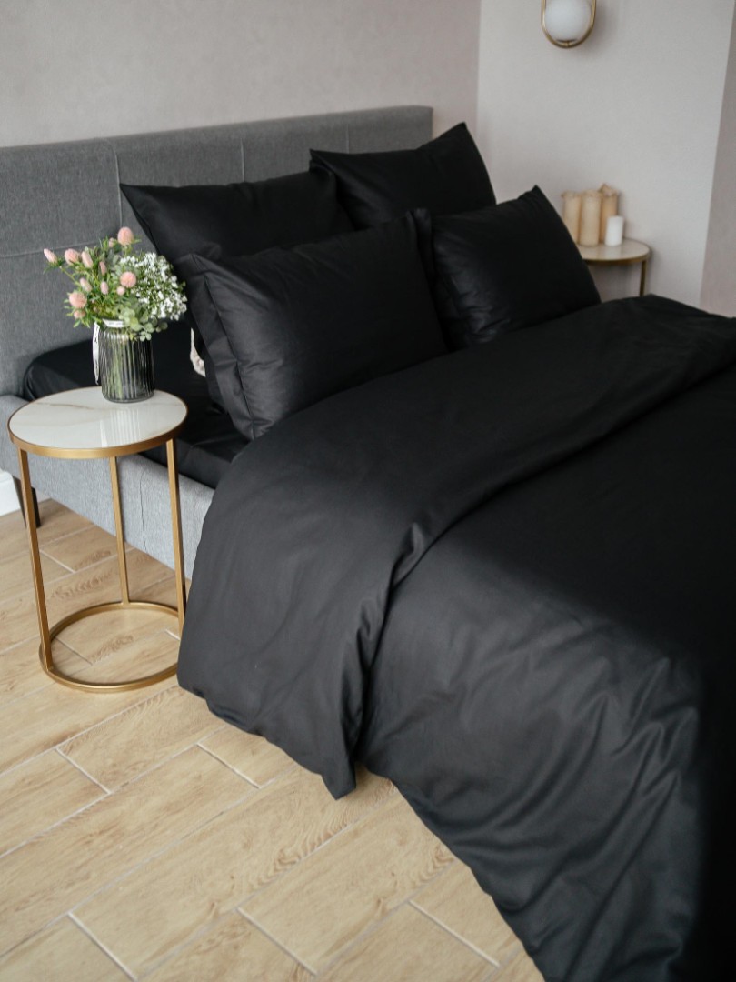 Комплект постельного белья Лен Семейный Черный с Простыней на резинке