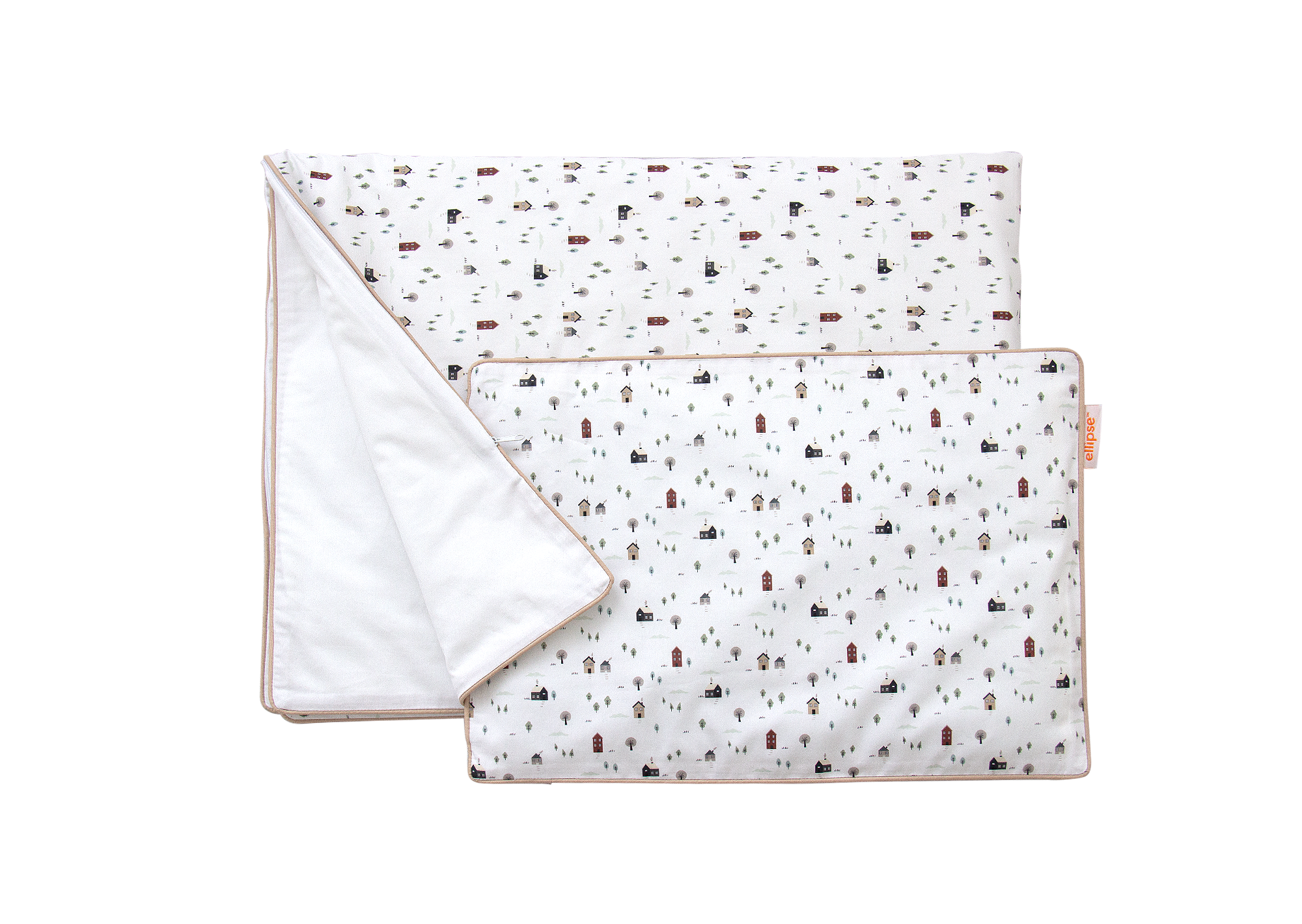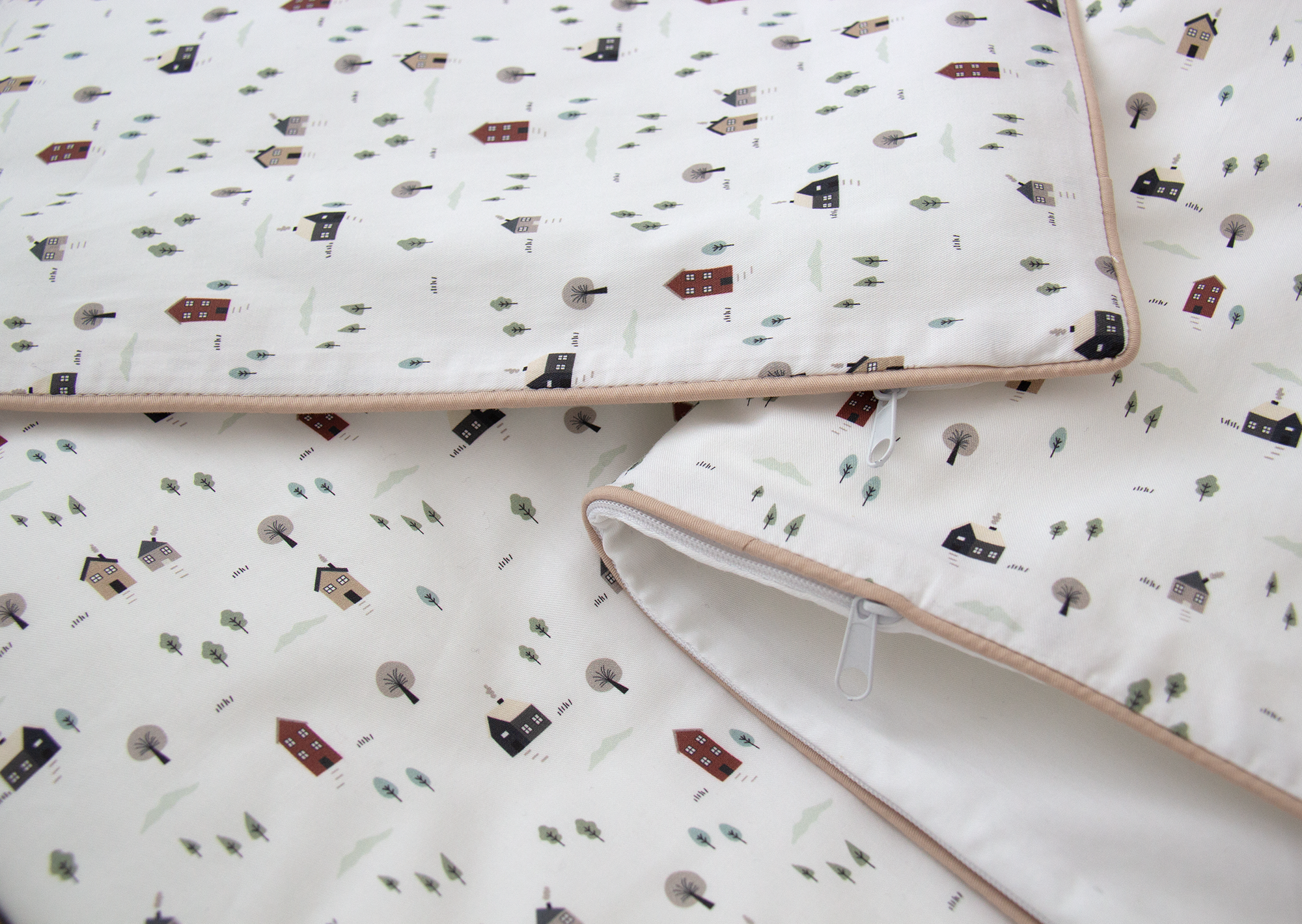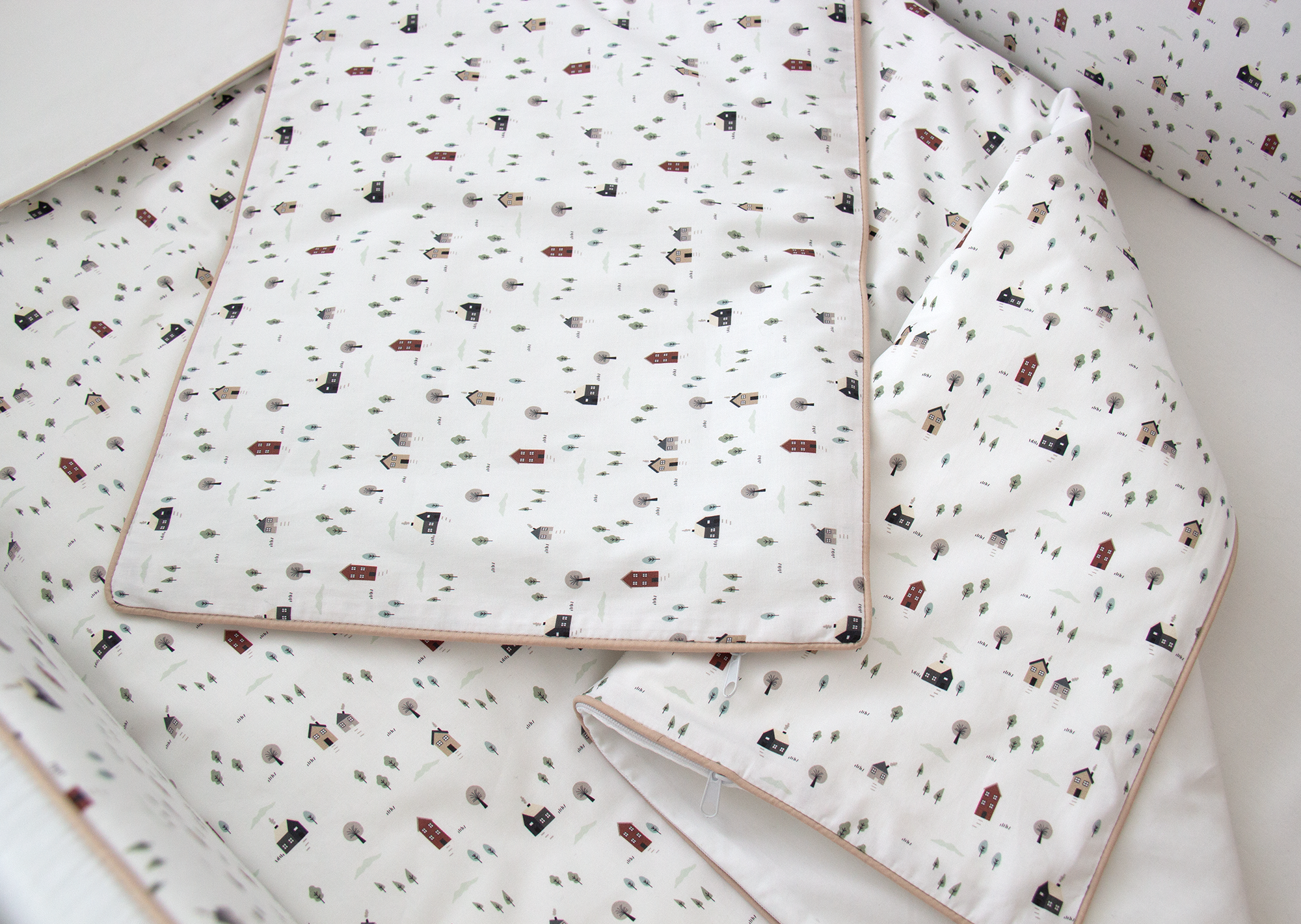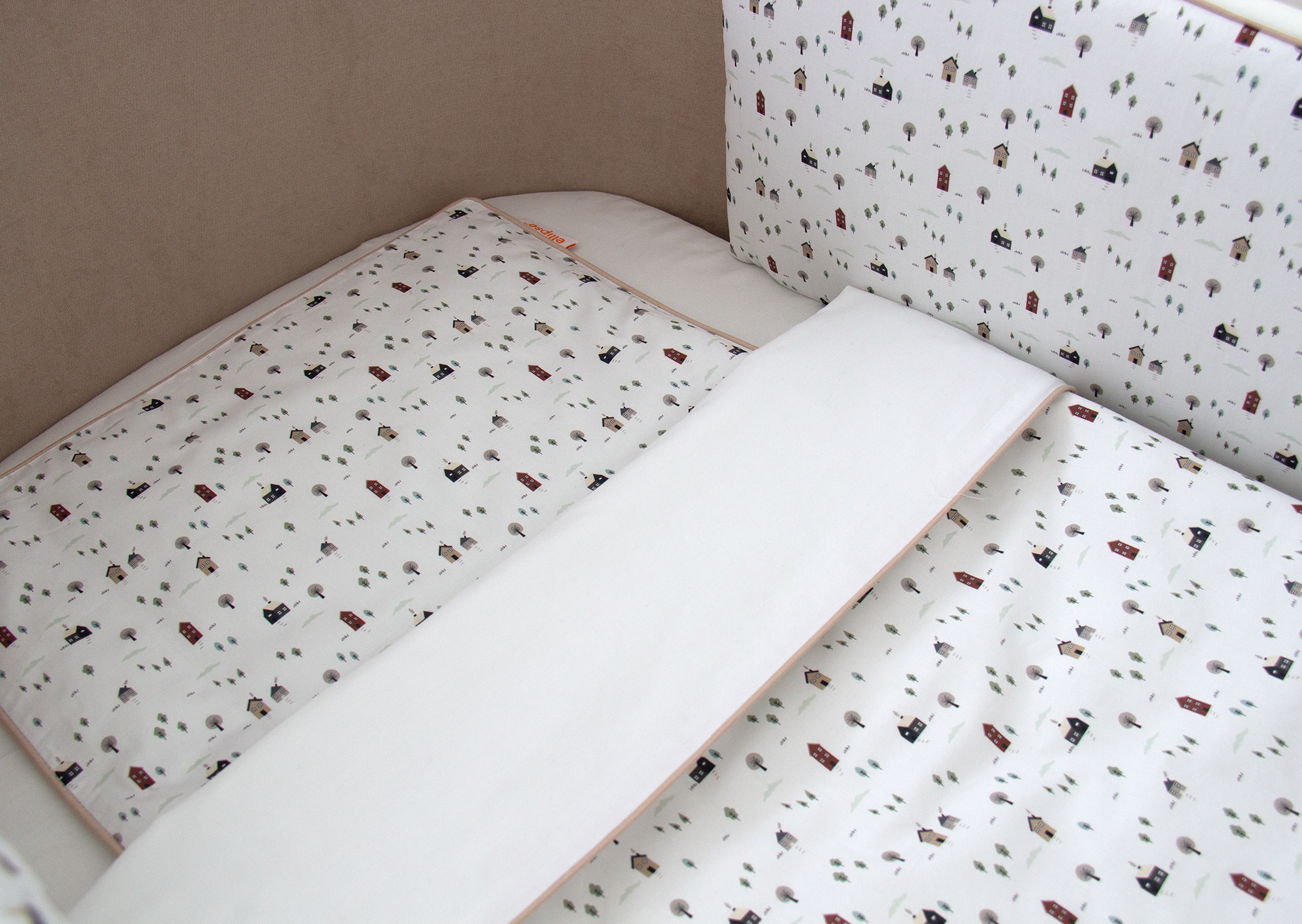 Постельное бельё в детскую кроватку «Домики» (кант, сатин). Состав: наволочка 40*32 см, пододеяльник 90*110 см