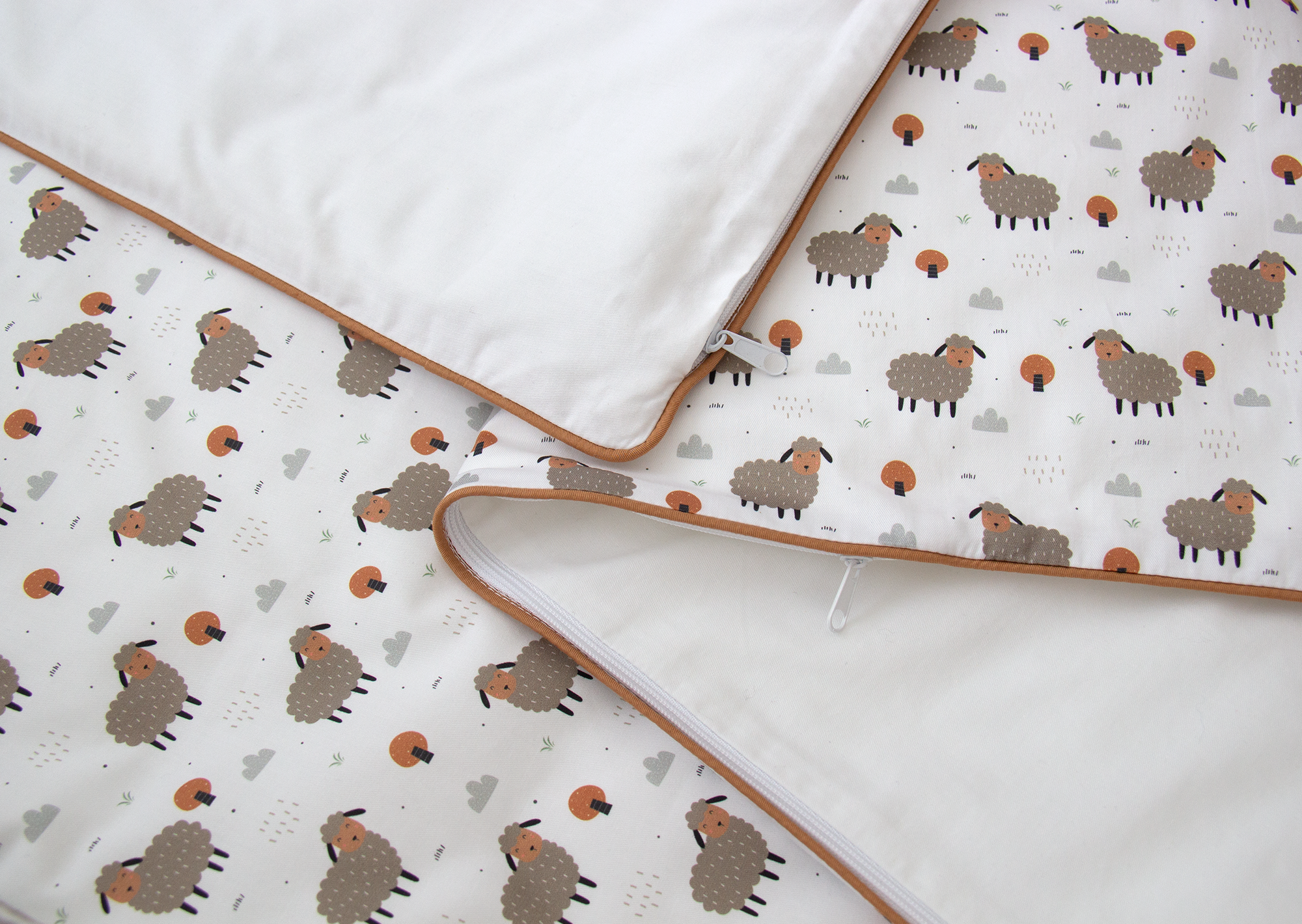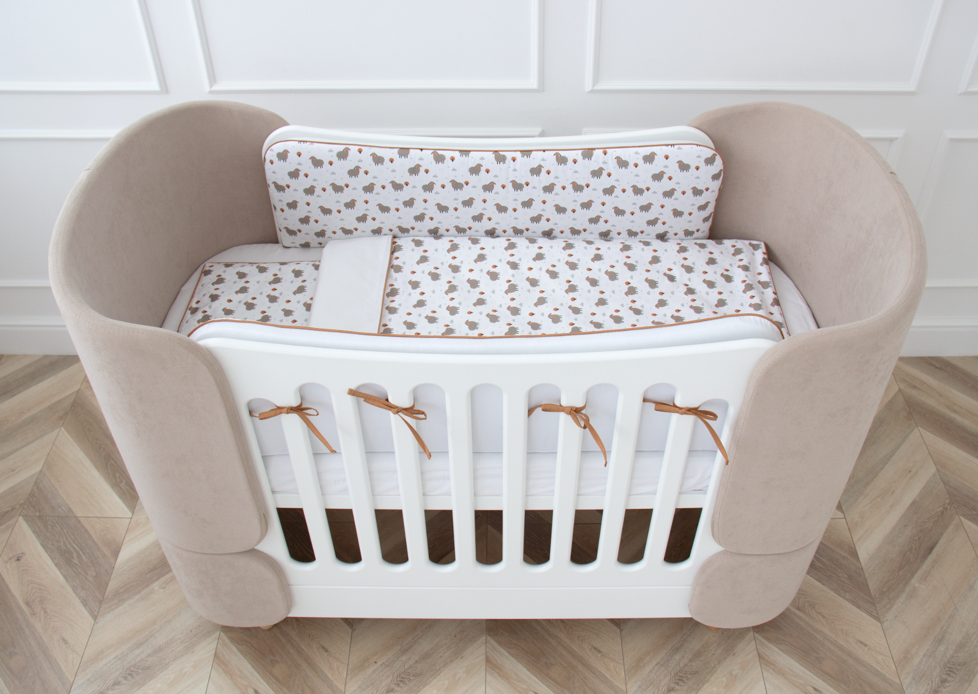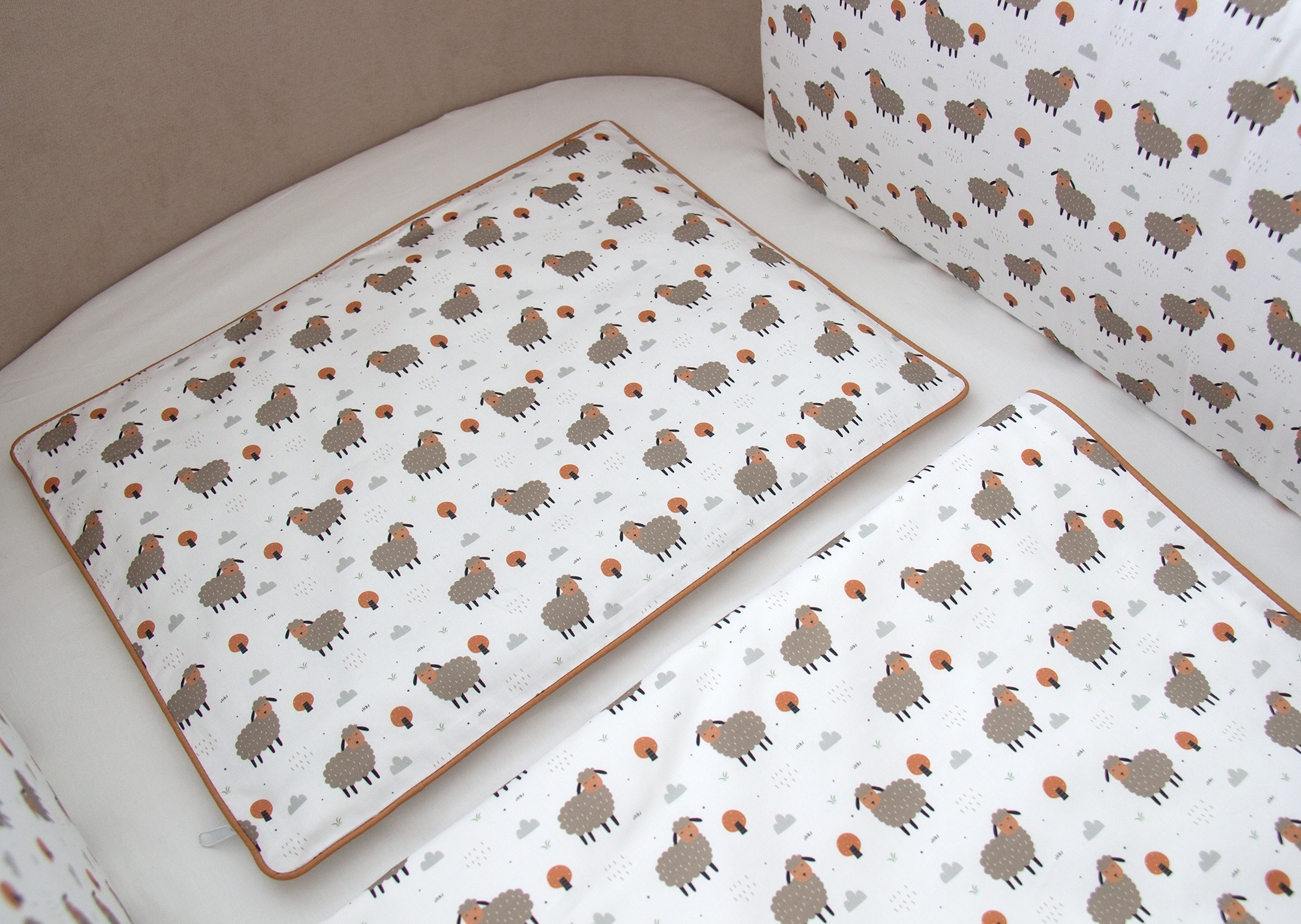 Постельное бельё в детскую кроватку «Серые овечки» (кант, сатин). Состав: наволочка 40*32 см, пододеяльник 90*110 см