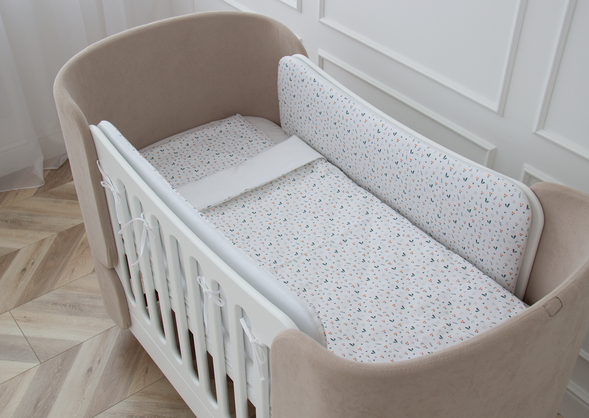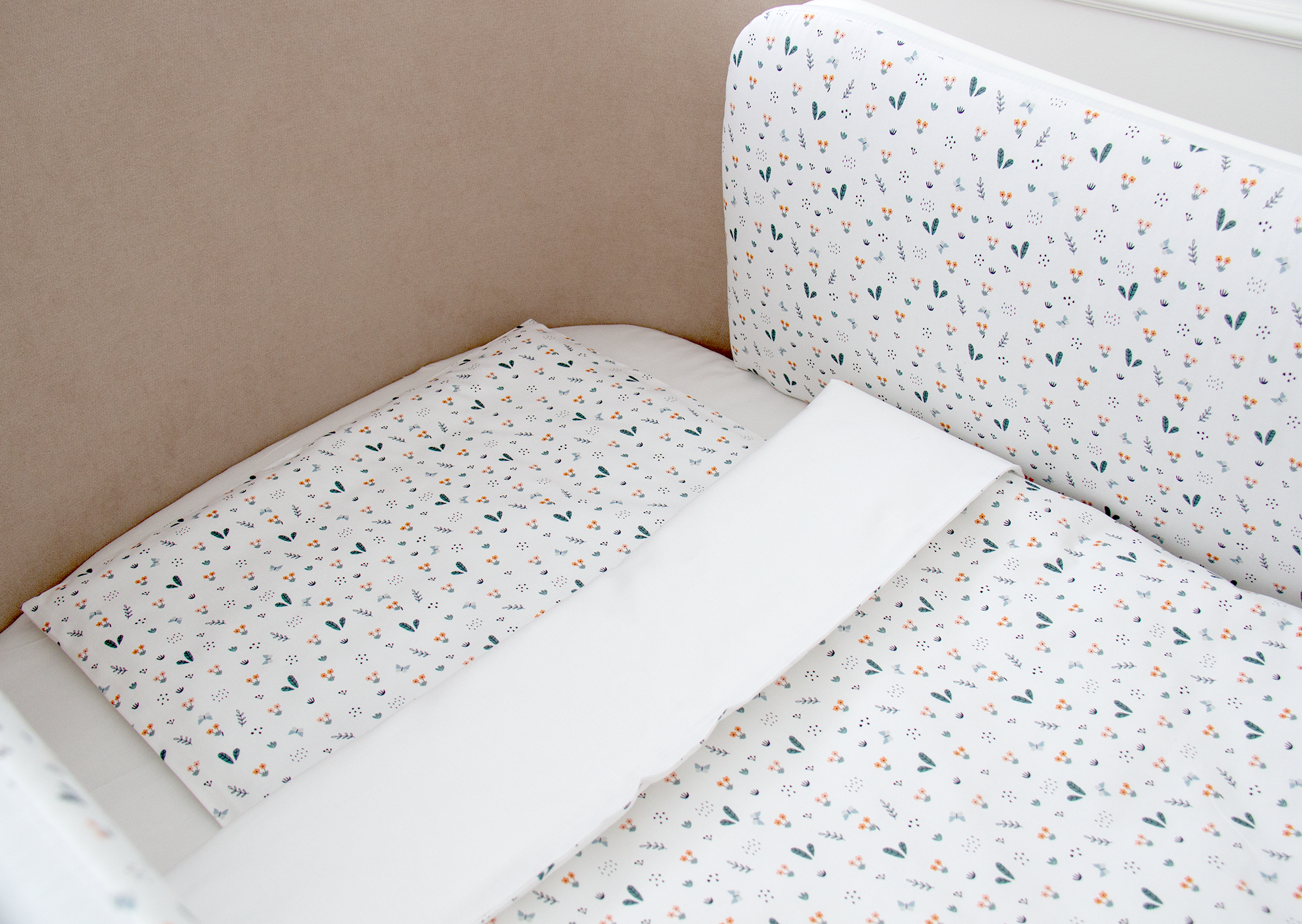 Постельное бельё в детскую кроватку «Цветочки веточки» (сатин). Состав: наволочка 40*32 см, пододеяльник 90*110 см