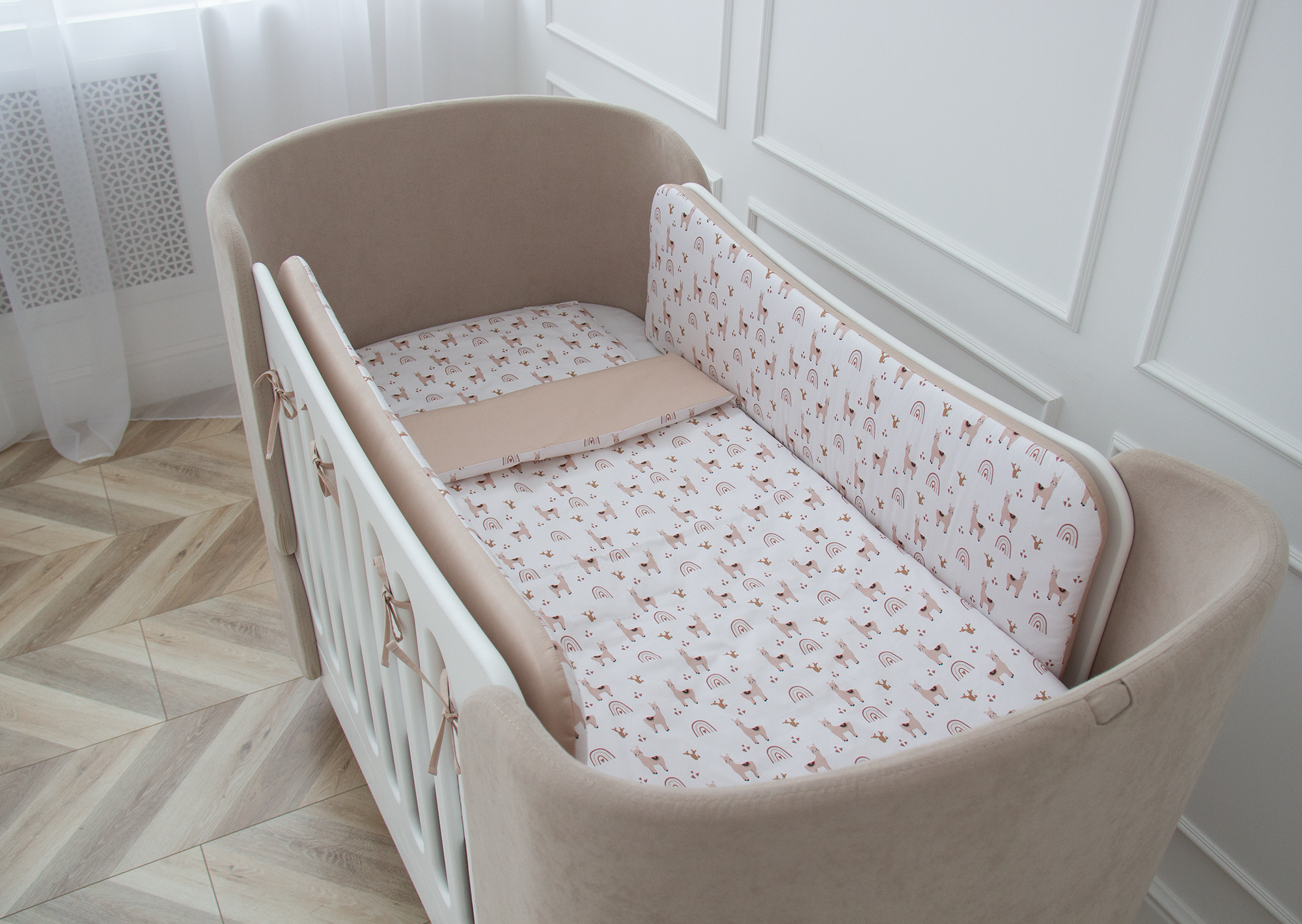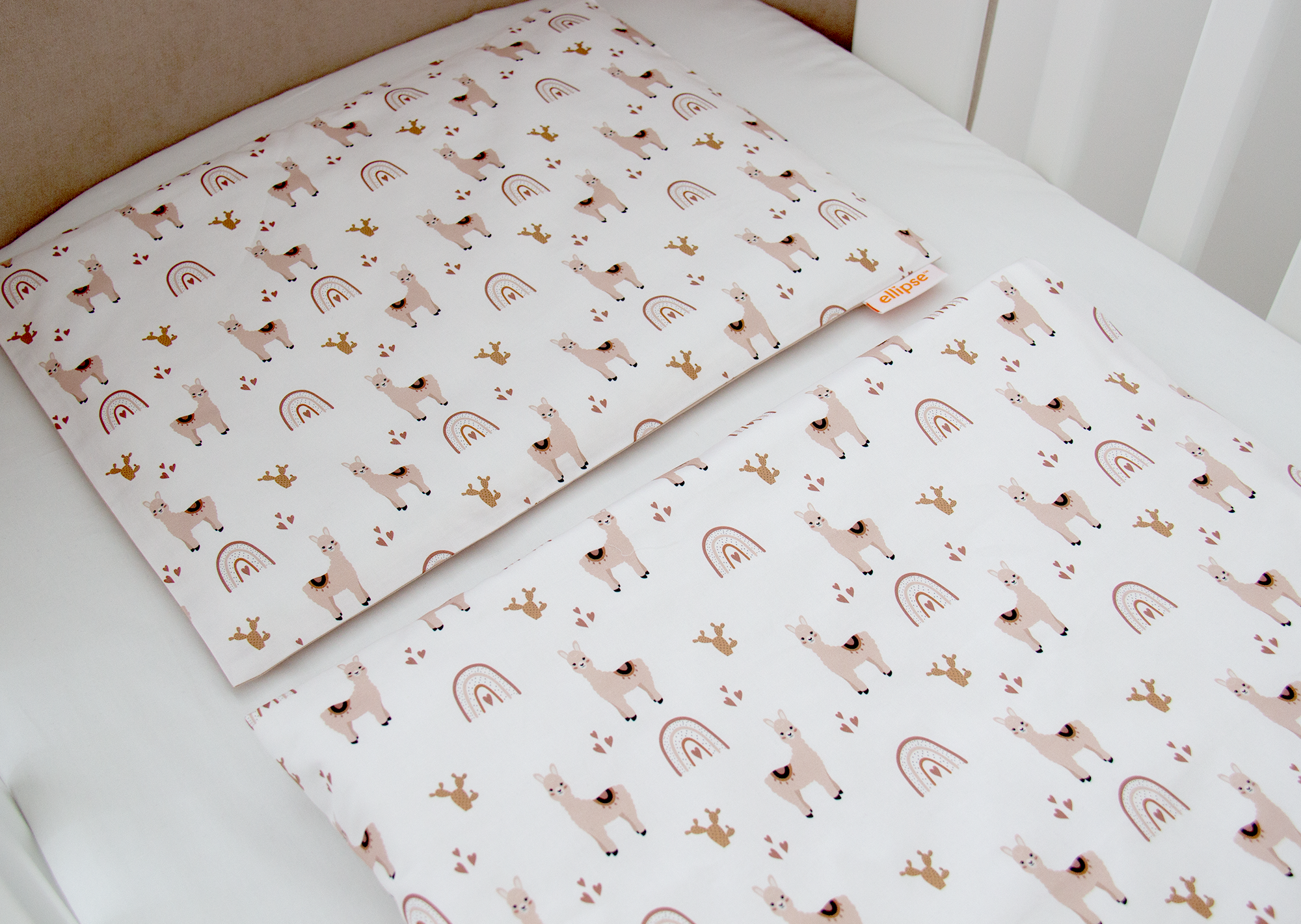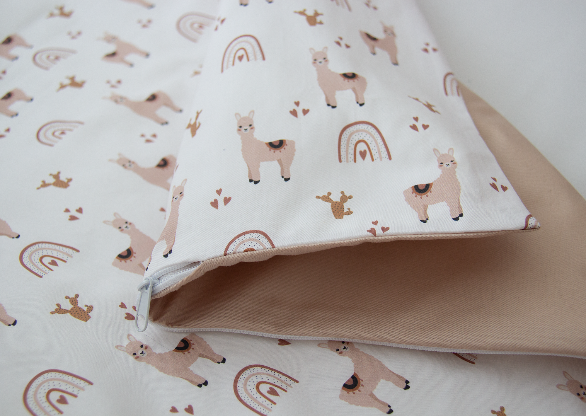 Постельное бельё в детскую кроватку «Лама» (бежевый, сатин). Состав: наволочка 40*32 см, пододеяльник 90*110 см