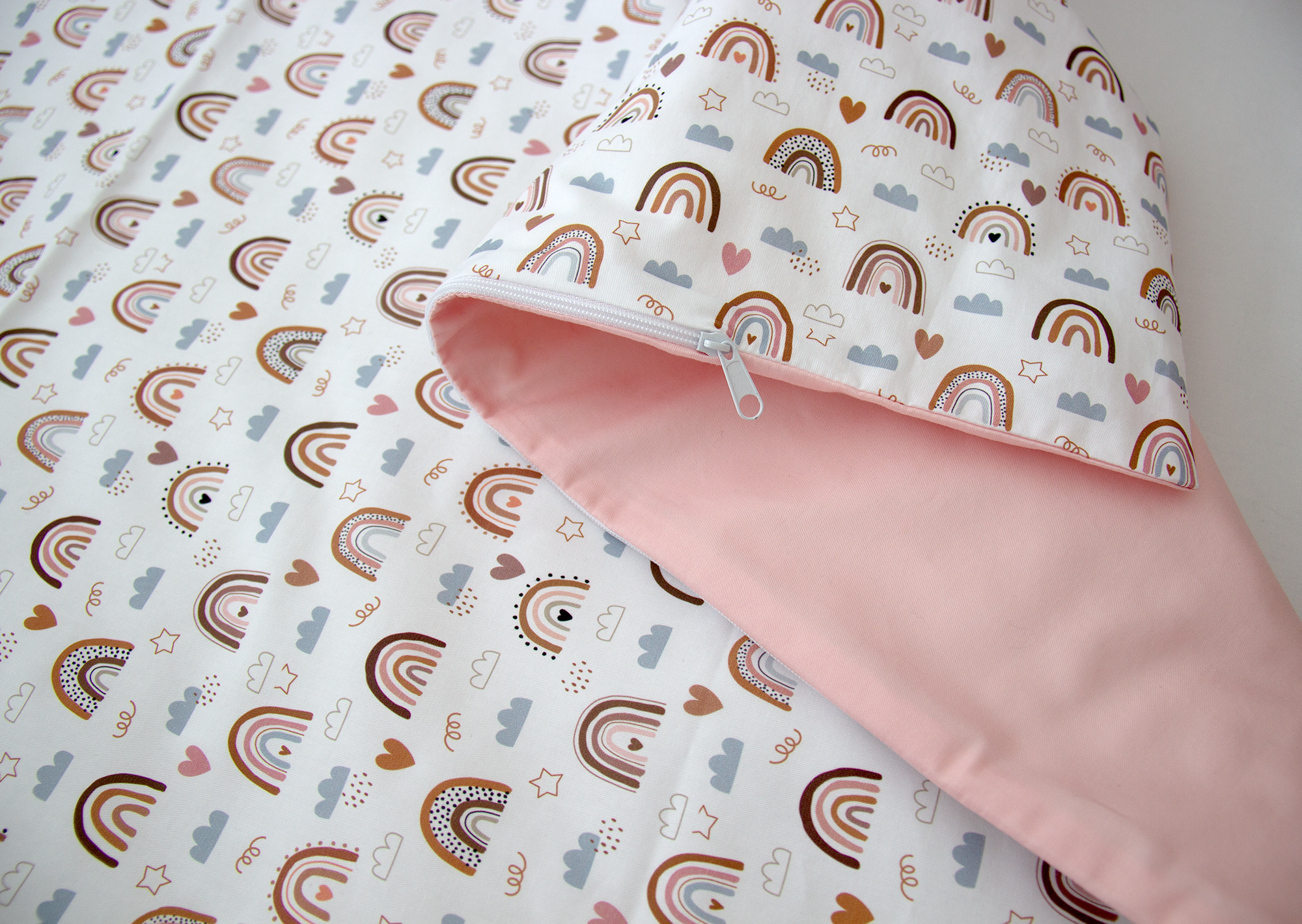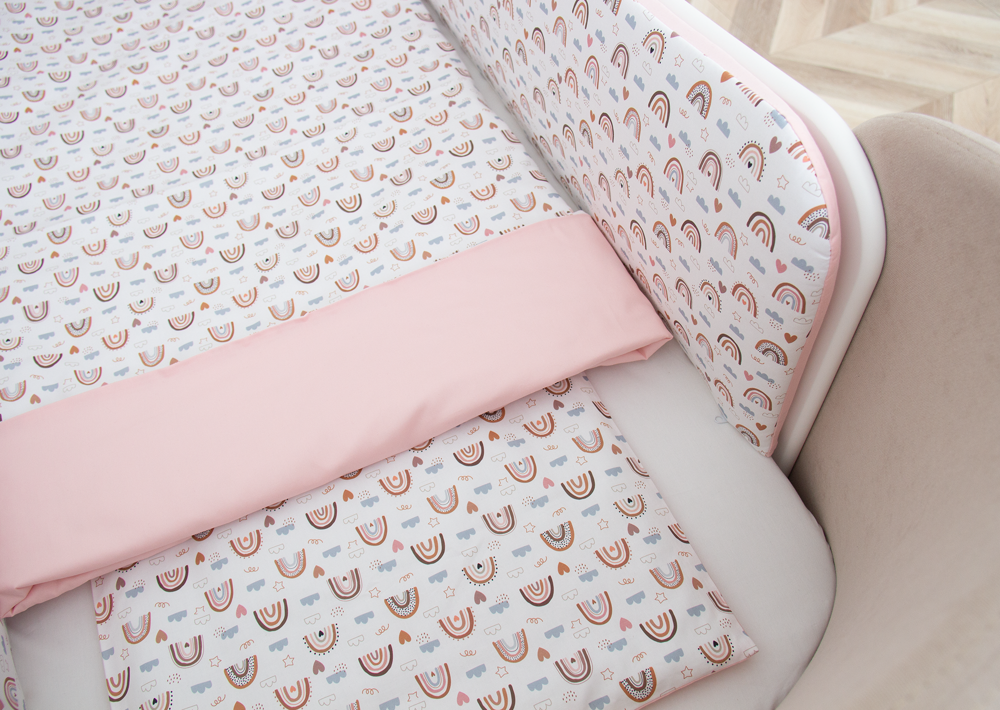 Постельное бельё в детскую кроватку «Милая радуга» (розовый, сатин). Состав: наволочка 40*32 см, пододеяльник 90*110 см