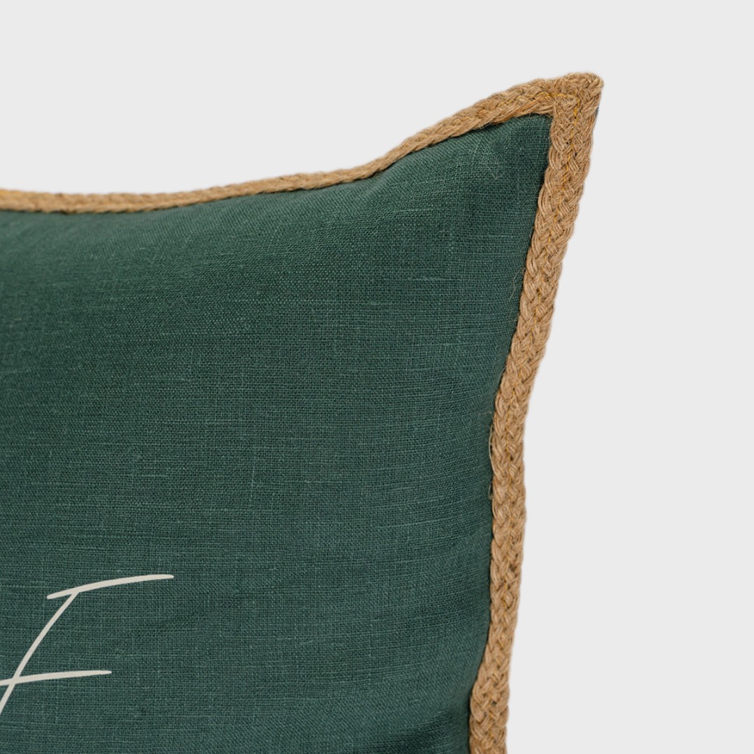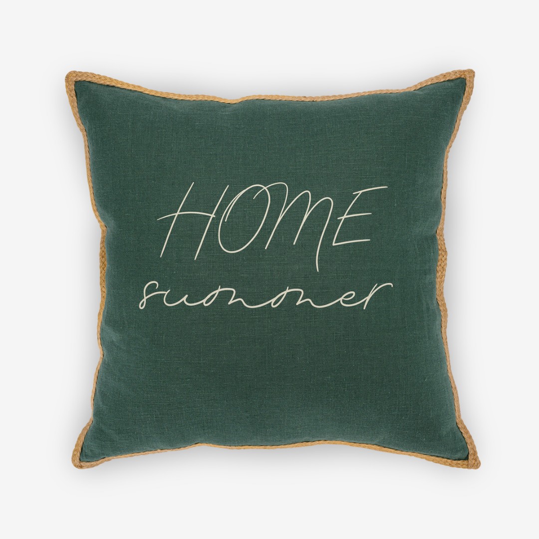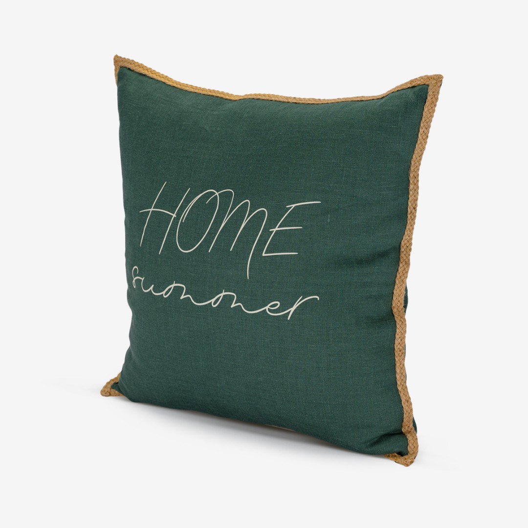 Запросить индивидуальное предложениеДекоративная подушка HOME SUMMER изготовлена из льна натуральго зеленого оттенка и декорирована джутовой тесьмой по краю.