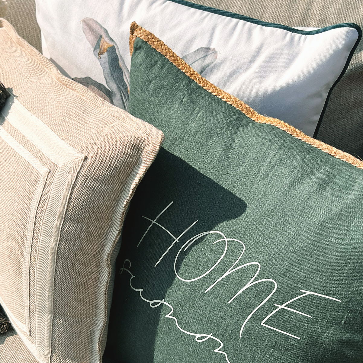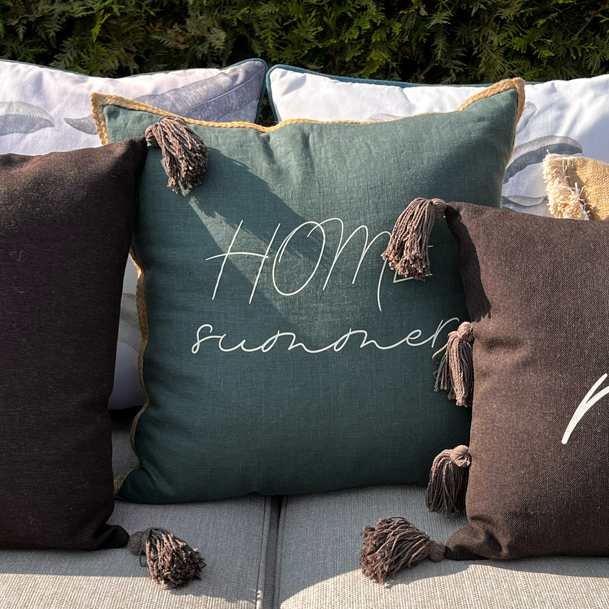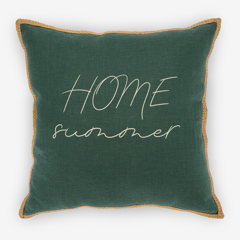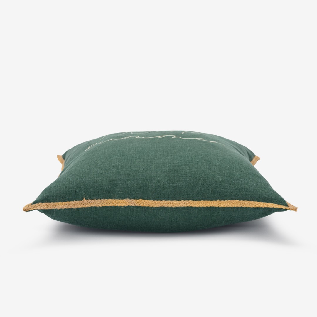 Запросить индивидуальное предложениеДекоративная подушка HOME SUMMER изготовлена из льна натуральго зеленого оттенка и декорирована джутовой тесьмой по краю.
