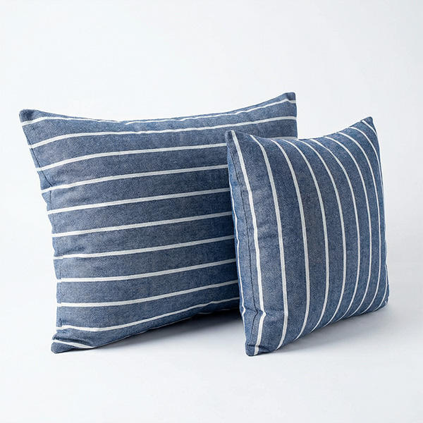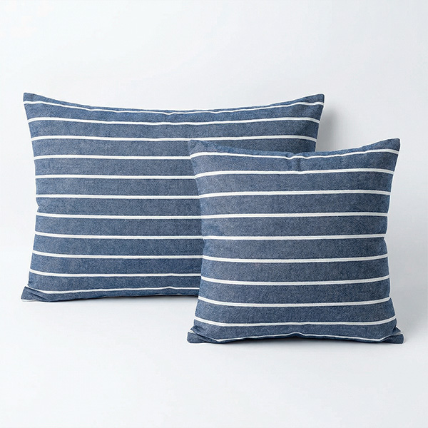 Комплект наволочек 70*70 (2 шт.) из вареного хлопка белая полоска на синем меланже с клапаном