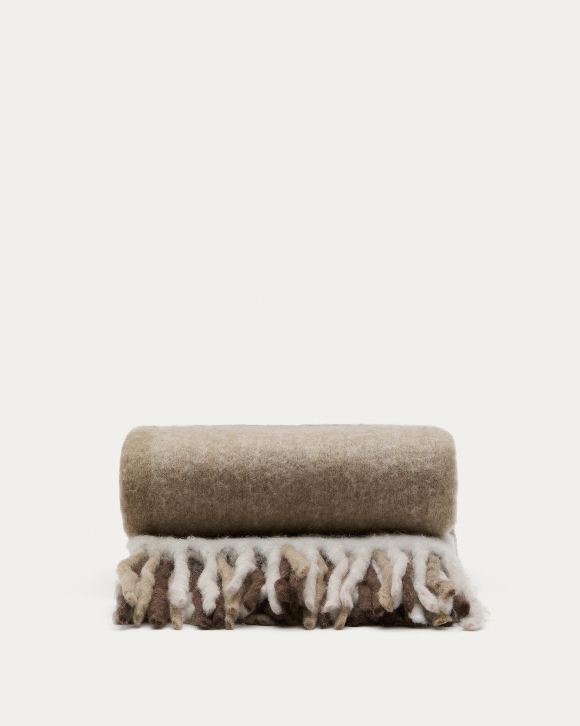 Плед Suley из коричневой клетчатой смеси шерсти, 130 x 170 см