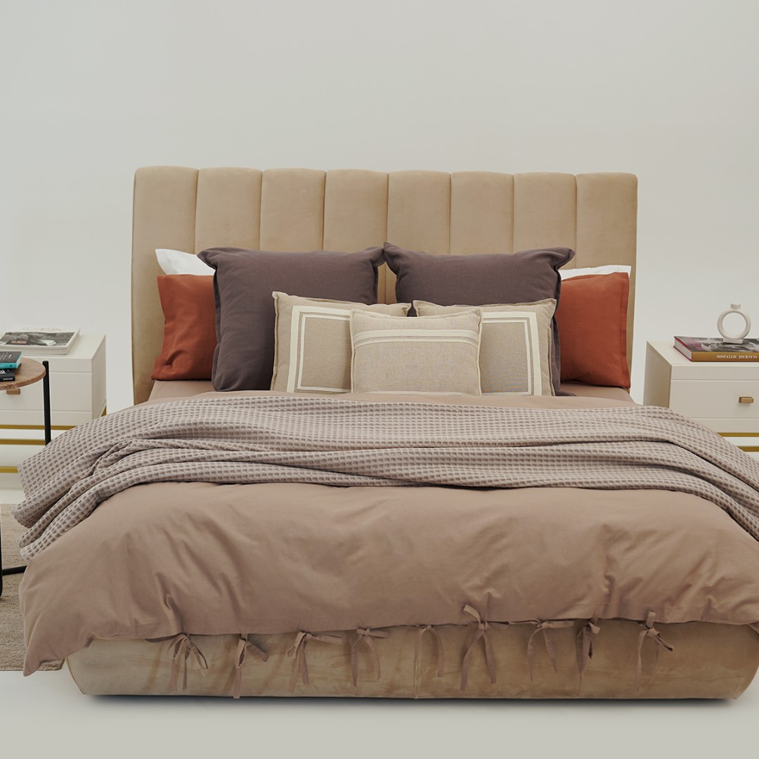 Запросить индивидуальное предложениеЛаконичные покрывала в классических оттенках, несомненно привнесут ухоженность и завершенность вашей спальне.