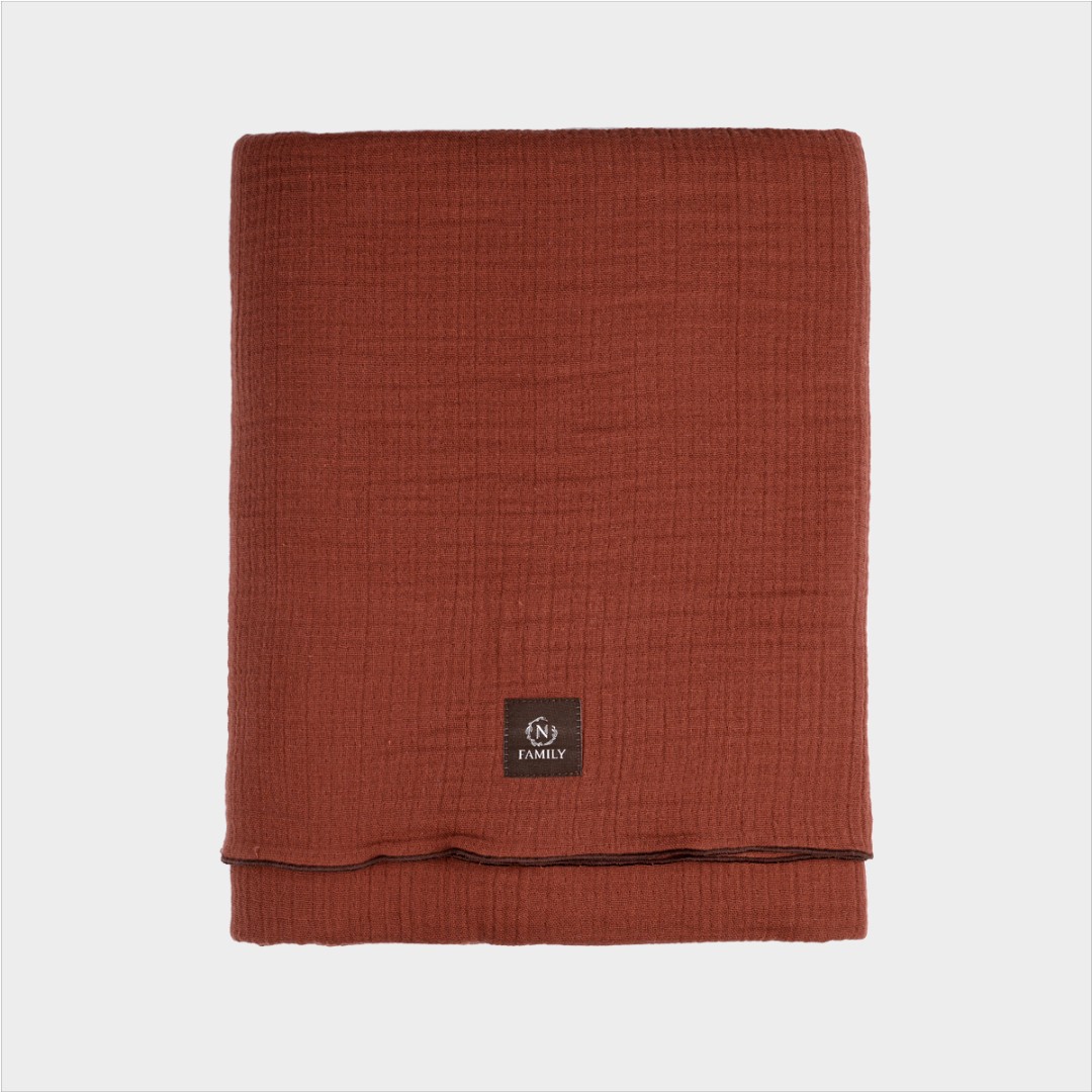 Покрывало из 4-х слойного муслина обьемное 220*240 см. цвет секвойя коричневый