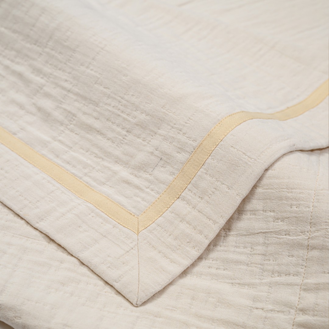 Запросить индивидуальное предложениеКомплект текстильный для дома изготовлен из 100% хлопка, плотность 370 г/кв.м.высшего качества от нашего испанского завода производителя натуральных тканей. Комплект состоит из двустороннего легкого покрывала 220*240 с наволочками 50*70 см ( 2шт) цвет белый, отделка из хлопковой ленты придает элегантный вид, наволочки декорированы кистями ручной работы, изготовленными из 100% хлопка.