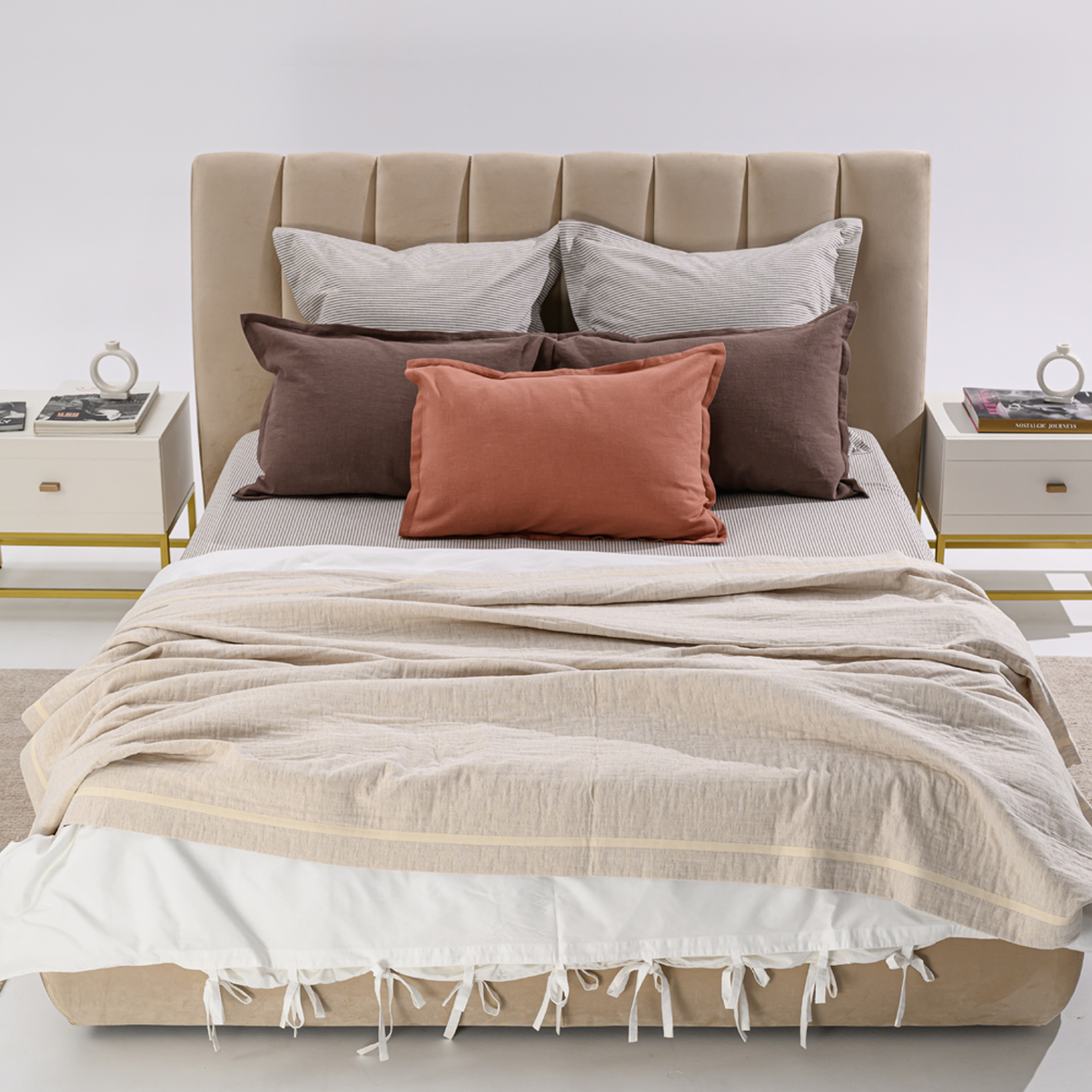 Комплект текстильный для дома — двустороннее легкое покрывало 220*240 см с наволочками ( 2шт) цвет светло бежевый