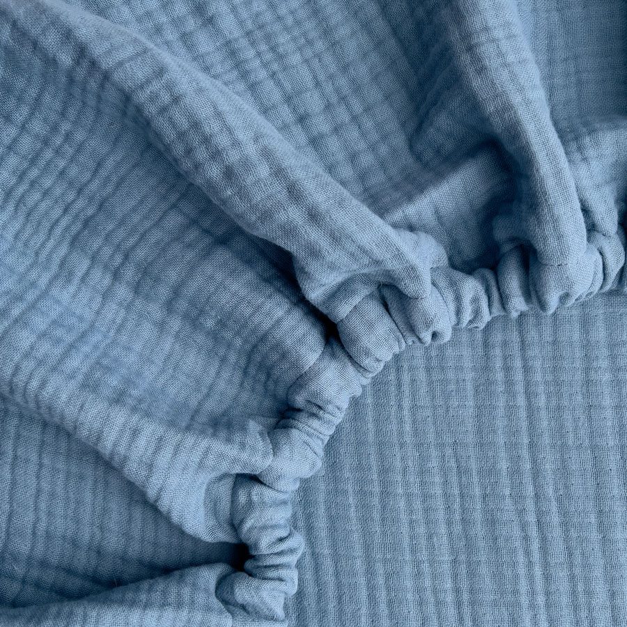 Натяжная простыня из муслина, цвет марокканский синий - 160х200х30 см