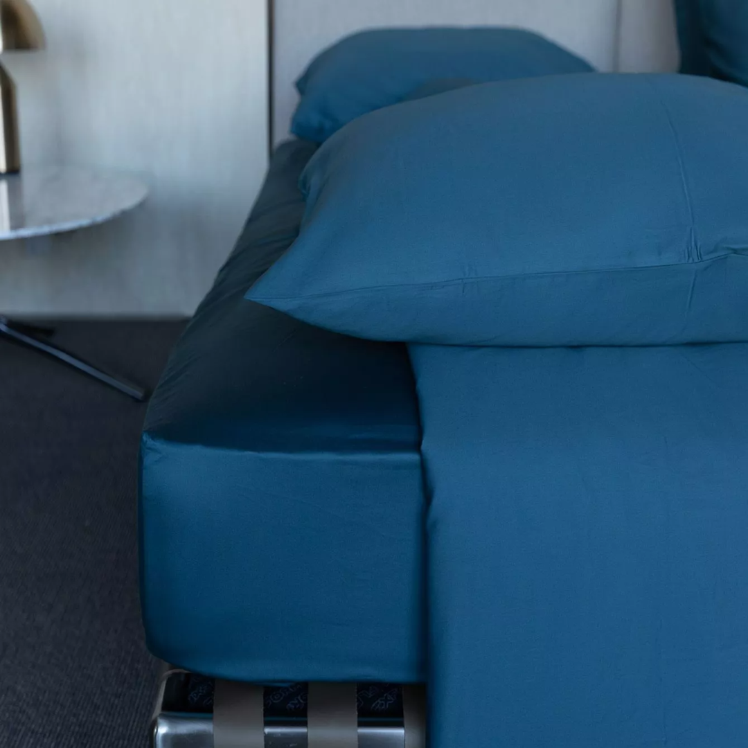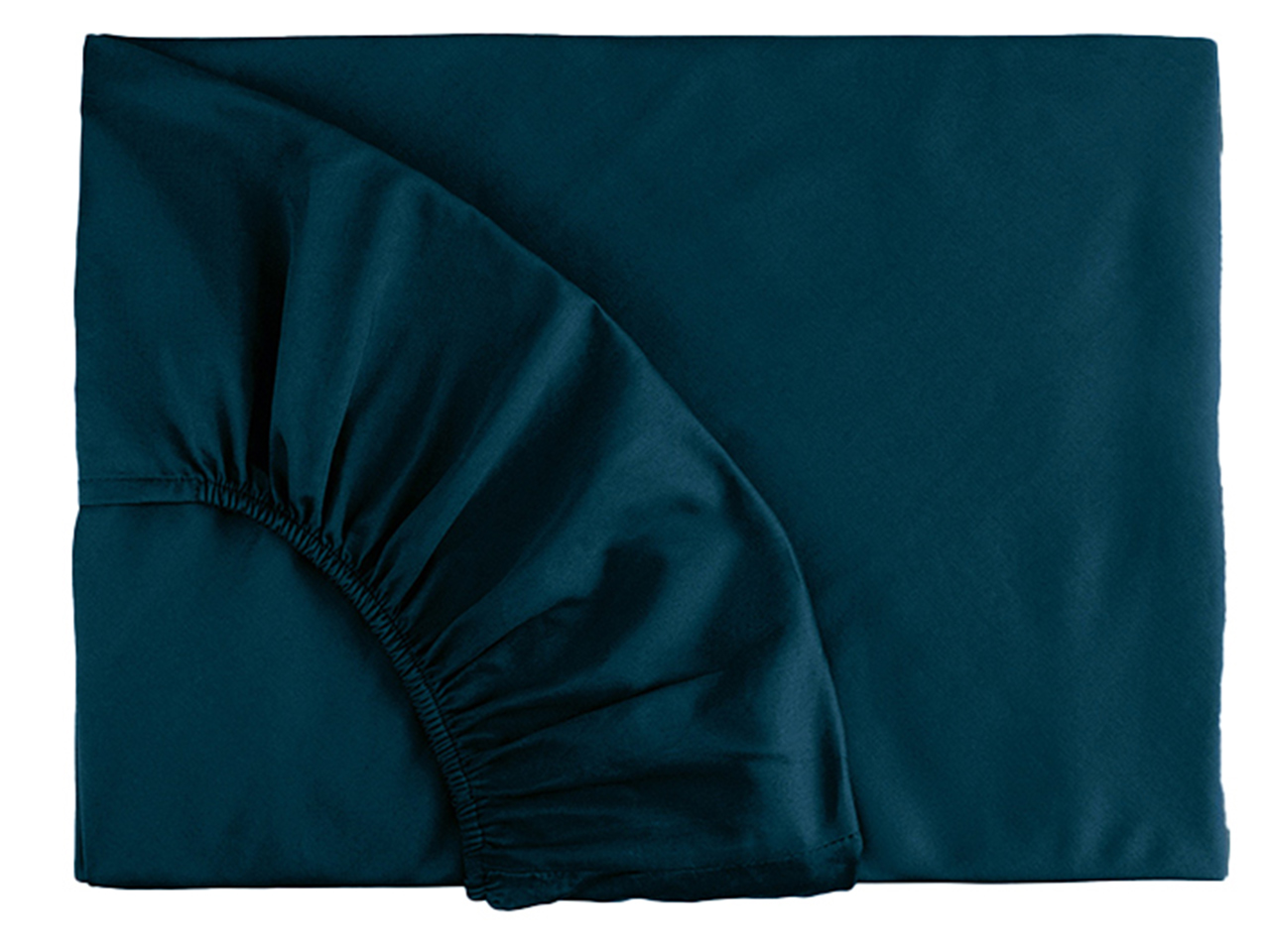 Простыня на резинке в темно-бирюзовом, сатин, 90х200х20