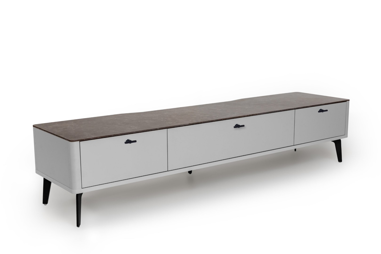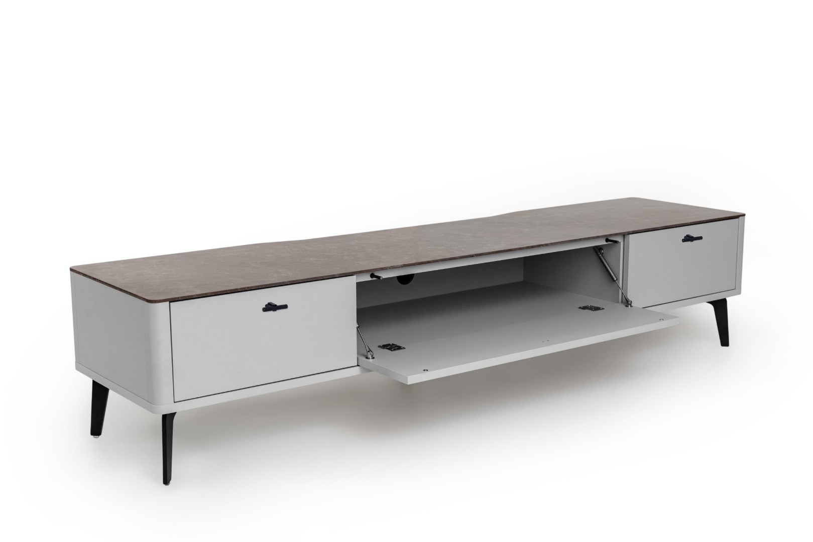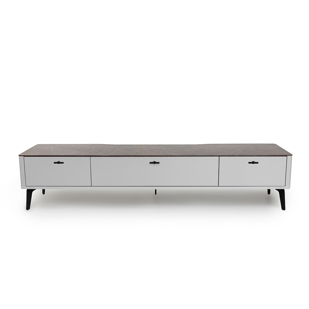 Тумба TV №2 цвет корпуса светло-серый soft touch, цвет топа коричневый песок, (Габариты: 1800 x 430 x 400 mm)