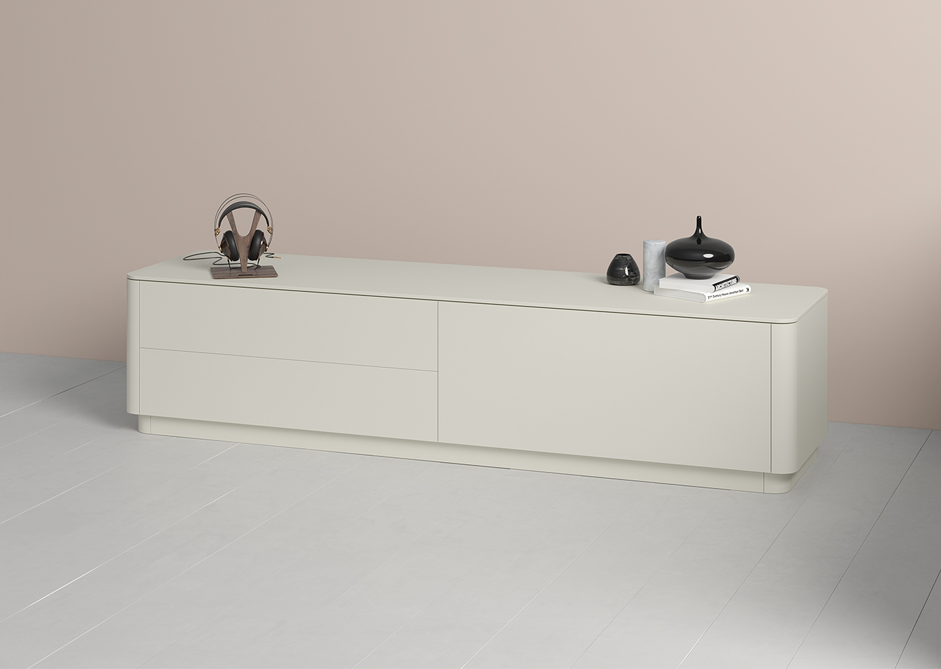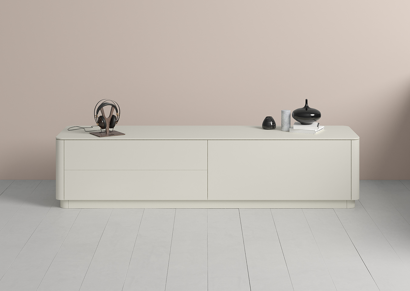Тумба Tammi под ТВ 2 ящика откидная дверь (молочный)
