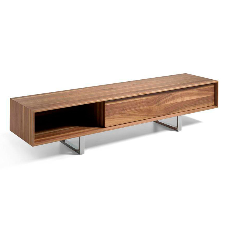 Запросить индивидуальное предложениеТумба под ТВ GOB-N5806 от Angel Cerda — традиционная конструкция в современном испанском исполнении. Тумба под ТВ GOB-N5806 — это модель для тех, кто ценит в мебели практичность, эргономику, минимализм. Здесь длинная столешница позволит поставить телевизор практически с любой диагональю, а прочные металлические ножки будут гарантом тому, что тумба ежедневно будет выдерживать высокую весовую нагрузку. Открытая полка и закрытый ящик — это удобно и оригинально. Тумба конструкционно состоит из двух ножек, одного выдвижного ящика и каркаса формы вытянутого прямоугольника. Широкий выдвижной ящик длиной 120 см — это вместительное хранилище для дисков, игровых приставок и прочих девайсов, которые обычно загромождают пространство возле телевизора. Ящик оснащен прочными металлическими направляющими и доводчиком на открывание и закрывание. Открытая полка рядом — отличное место для установки модема, хранения пультов ДУ. Материал изготовления — МДФ и шпон орехового дерева. Он отличается красивым природным орнаментом и мягким коричневым цветом. Данная порода прочная и долговечная. Опоры выполнены из хромированной стали. Они имеют рамочную конструкцию, благодаря чему тумба уверенно будет стоять на поверхности с любым напольным покрытием. Цвета отделки указываются в соответствии с каталогом производителя. Допускается незначительное отклонение в цвете, обусловленное техническими особенностями цветопередачи фотографий. Доставка осуществляется в разобранном виде. Для самостоятельной сборки предусмотрен крепеж и инструкция.