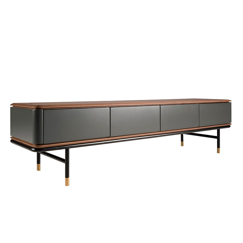 Запросить индивидуальное предложениеСовременная тумба под телевизор с темно-серой деревянной конструкцией из МДФ с матовой отделкой и оригинальными черными ножками из нержавеющей стали. Благодаря элегантной столешнице из натурального орехового шпона вы получите изысканный вид, который ищете в своих комнатах. Ее оригинальные золотистые полированные детали из нержавеющей стали добавят идеальный штрих стиля в вашу гостиную. Она имеет достаточно места для хранения с 4 ящиками с системой открывания и закрывания push and pull. Цвета отделки указываются в соответствии с каталогом производителя. Допускается незначительное отклонение в цвете, обусловленное техническими особенностями цветопередачи фотографий.
