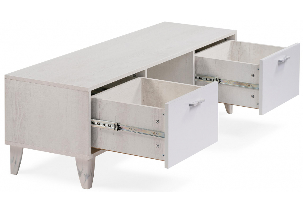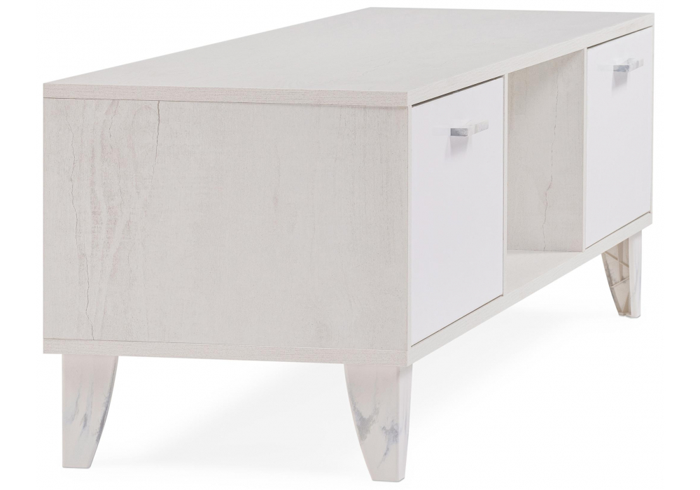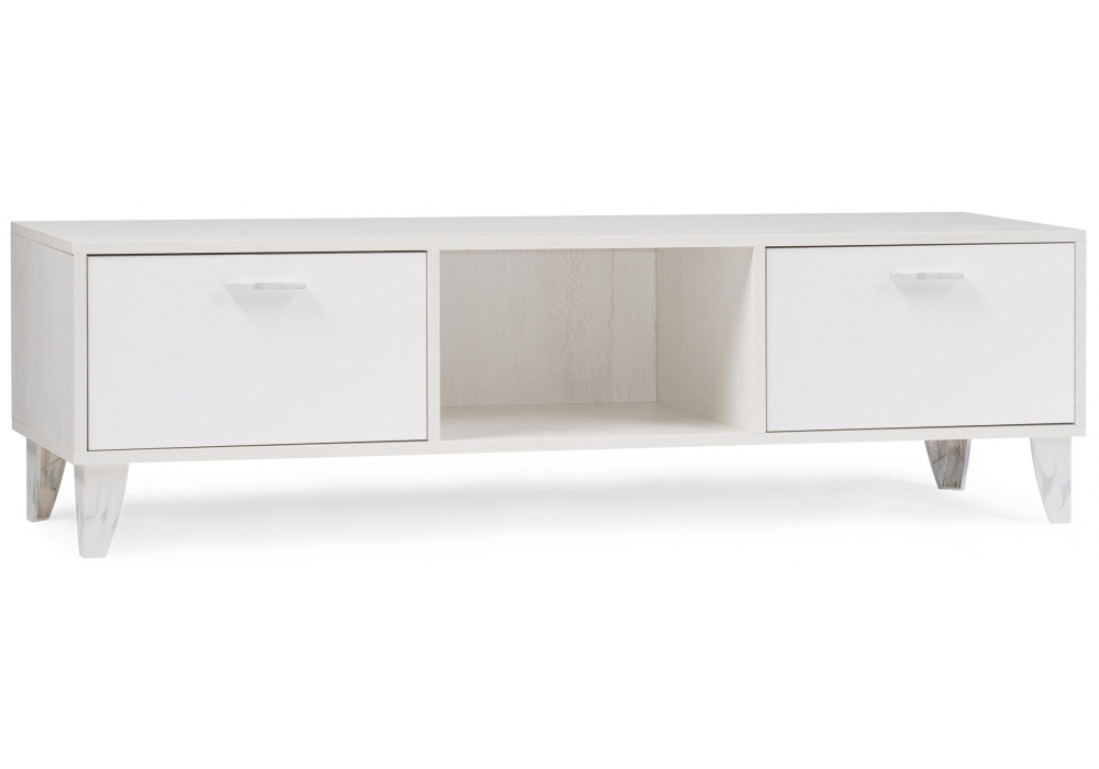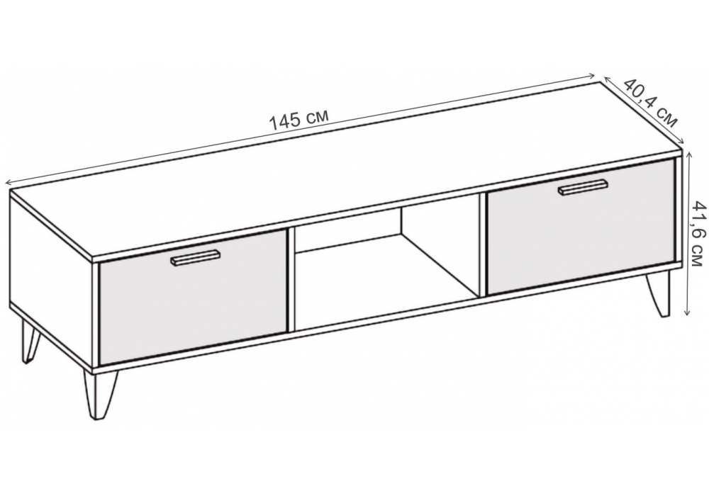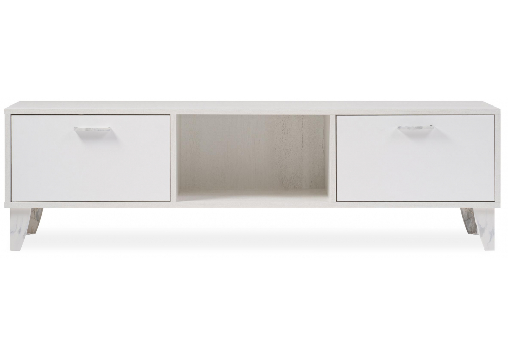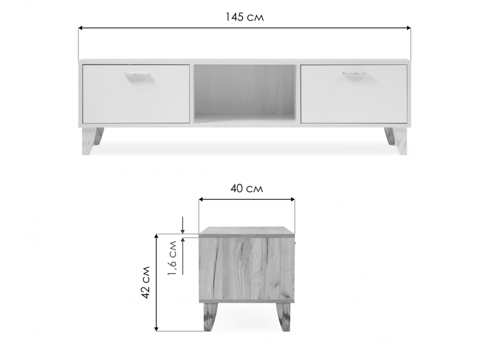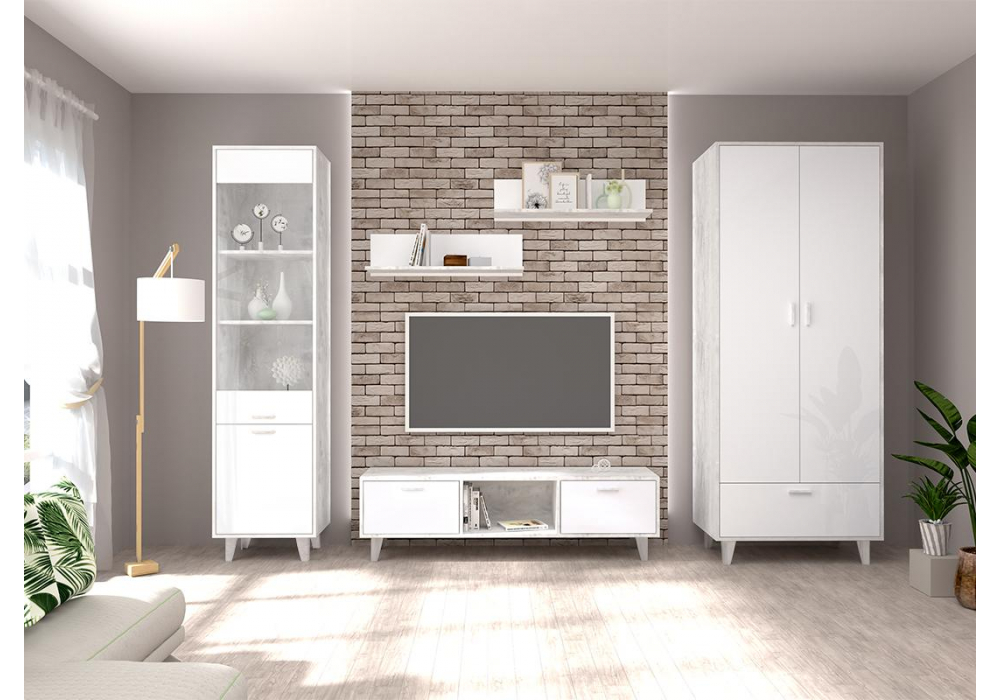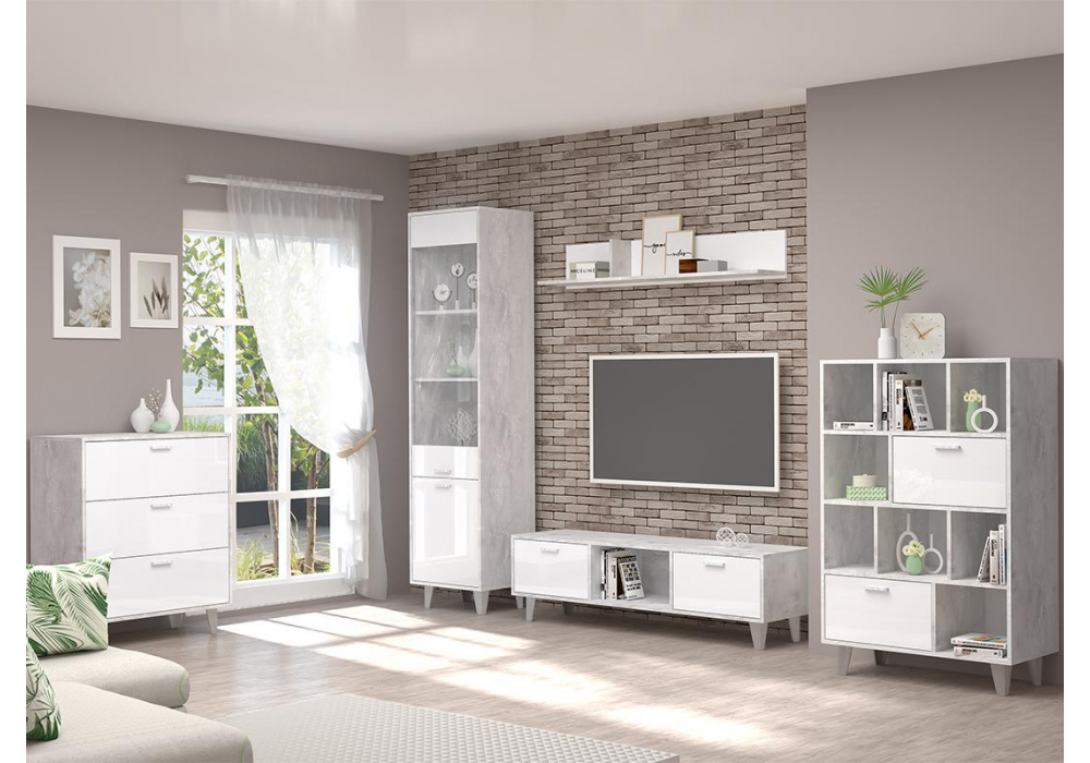 ТВ-тумба Эго Т-3 на ножках бетон светлый / белый глянец
