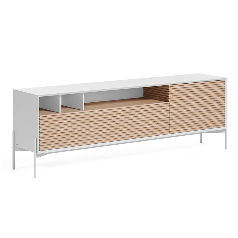 Тумба под телевизор Marielle из ясеня с белым лаком 187 x 63 см