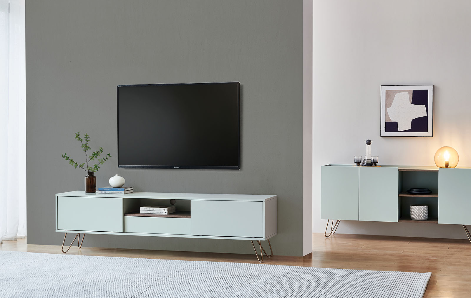 ТВ Тумба Tilda, светло-серый/орех